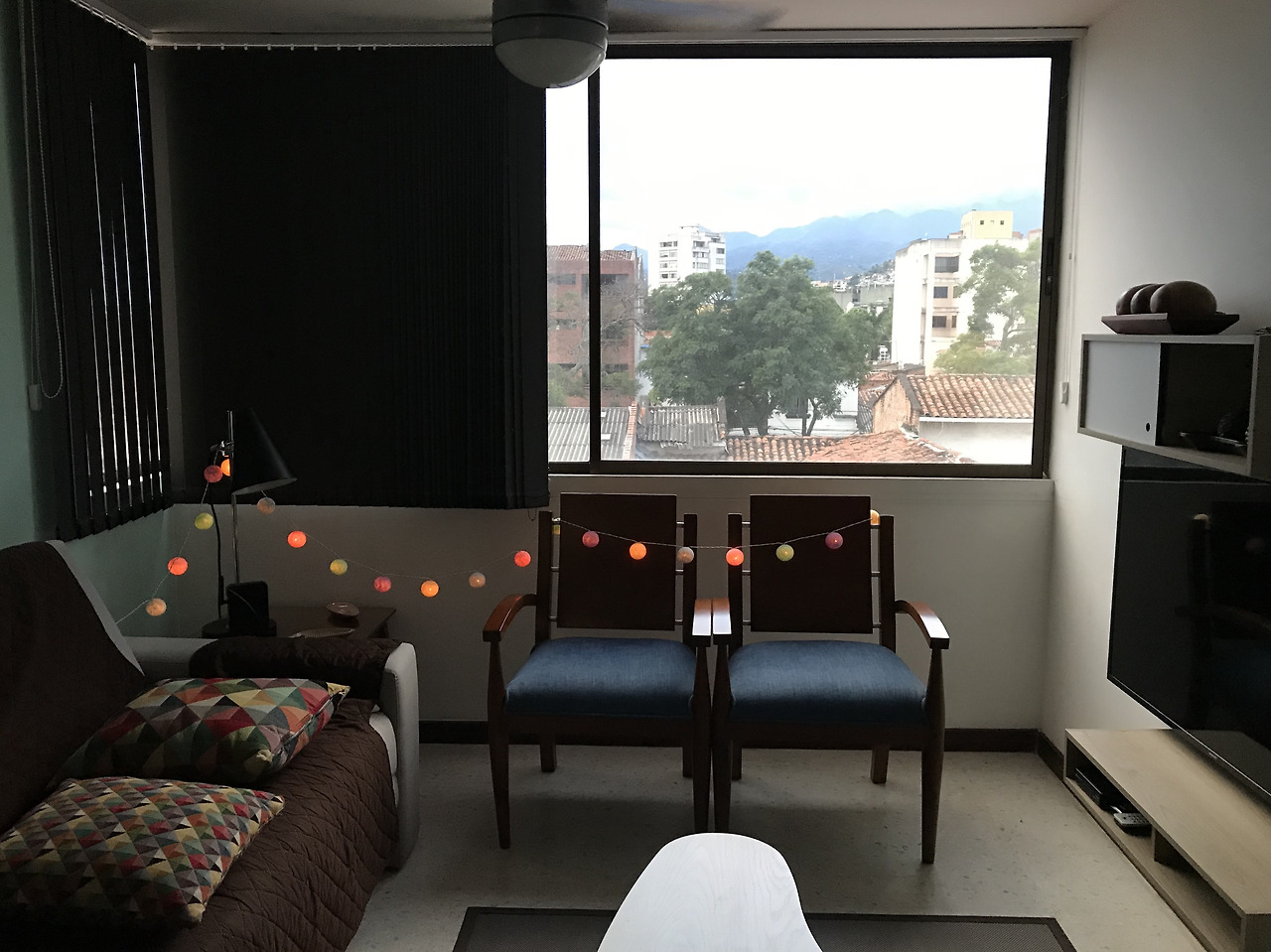 콜롬비아 칼리는 12월 말(크리스마스부터 연말까지)에 살사 축제(라 페리아 카니발)를 크게 하는데 그것 때문에 그 기간은 많은 숙소가 이미 예약이 되어있었다. 카니발 기간만 다른 곳 예약을 잡아두고 여긴 그 전까지만 있기로 해서 이 집에서는 총 3주 정도는 머물 예정이다. 미라플로레스라는 동네인데 나름 안전한 편이고 살사 학원까지 걸어갈만한 거리에 버스 정류장도 가까웠다. 짐을 풀고 태국에서 산 크리스마스 조명 볼도 장식했더니 블링블링한 게 참 예쁘다. 독립하면 이런 기분일까? 마치 내 집 같다.