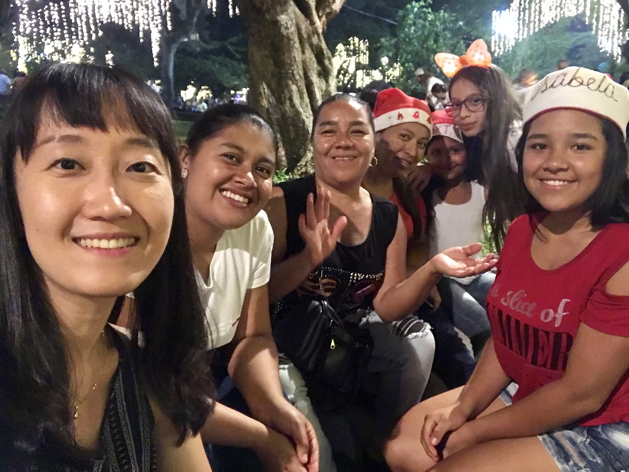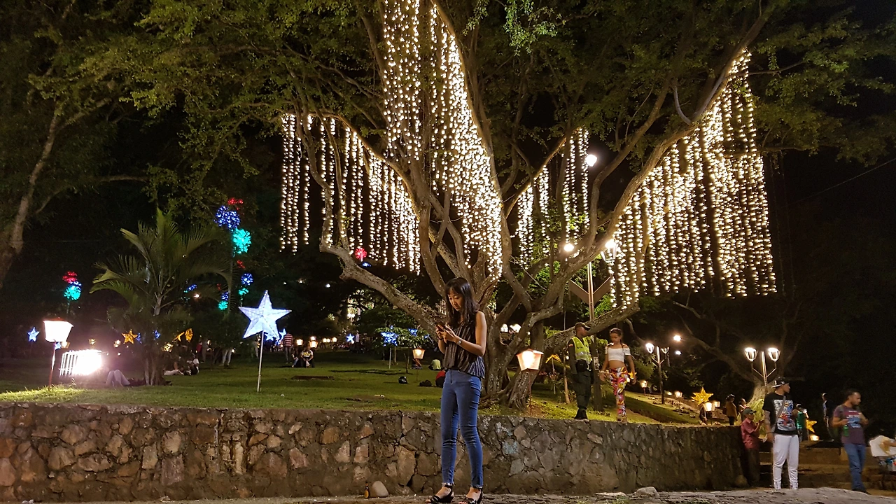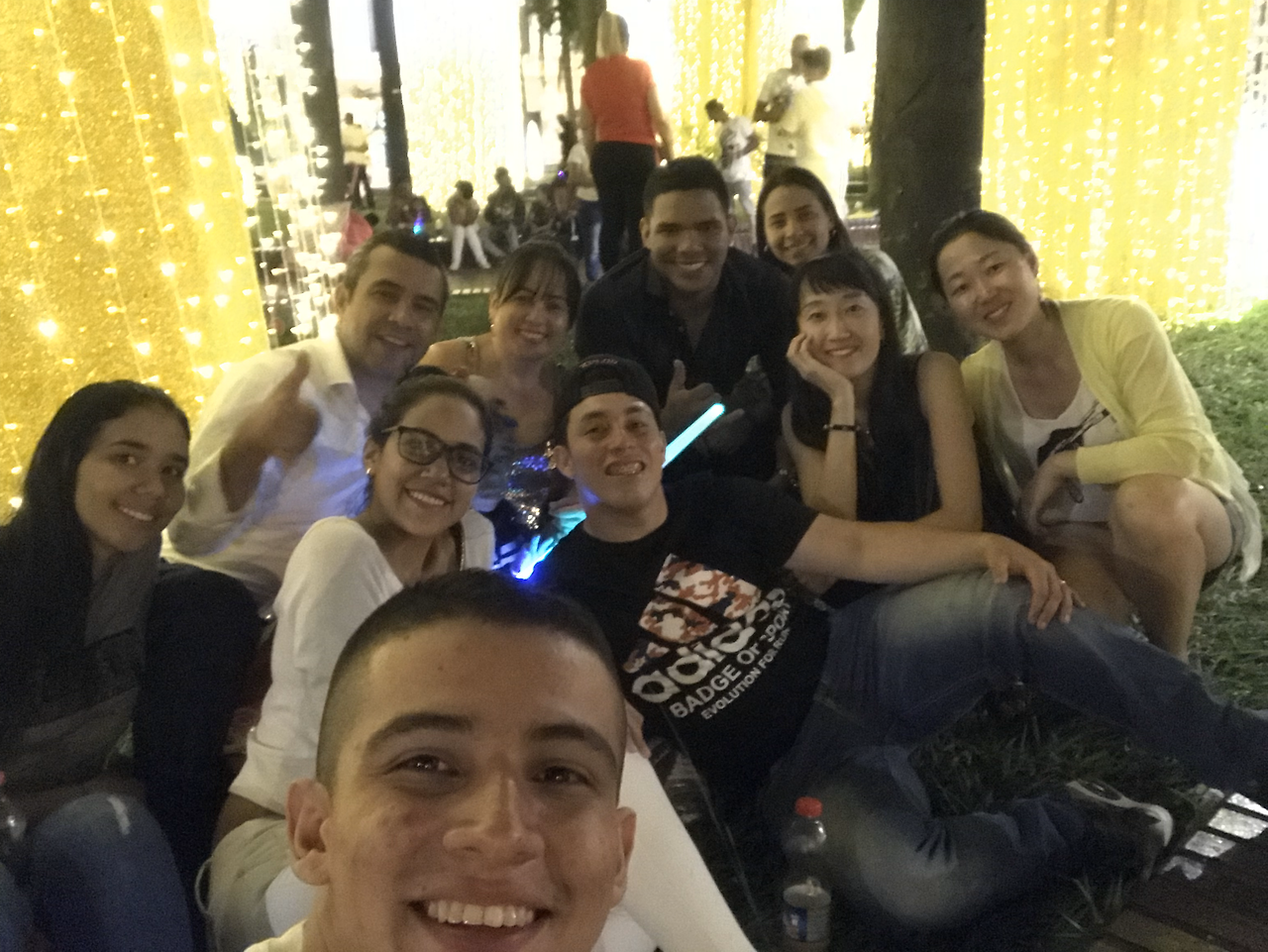 칼리에는 여행자들이 많이 가는 곳이 산 안토니오인데 거긴 고도가 좀 높은 편에 언덕이 자주 등장하는 동네다. 우리 집은 미라플로레스로 산 안토니오 남쪽에 위치한 언덕이 별로 없는 곳이다. 그렇게 언덕 몇 개를 오르락내리락하며 걷다 택시를 타고 도착한 분과 조촐한 한식 밥상으로 첫 인연이 시작되었다. 우린 처음 만났음에도 서로 존댓말을 썼지만 별의별 이야기를 다 하며 친해졌다. 이미 한국에서 살사를 배웠고 지금은 탱고에 푹 빠지셨다고. 나보다 한 살 많은 언니랑은 나이도 비슷해서 이야기하기가 더 편했다. 우린 처음 만났음에도 이야기가 끊이질 않았고 밥 먹고 수다를 떨다 보니 어느새 해가 저물었다. 이틀 후에 칼리를 떠난다는 언니와 크리스마스로 블링블링 빛나는 칼리를 구경을 하기로 하고 산 안토니오의 성당 앞 공원으로 갔다.