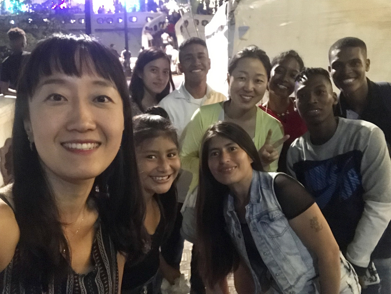 그리고는 몇 팀과 그렇게 사진을 찍고 자리를 옮겨 강 쪽으로 갔는데 거기서도 같이 사진 찍자고 해서 한 컷, 또 자리를 옮겼더니 거기서도 같이 사진 찍자고 하는 거다. 워낙에 콜롬비아에 아시아 사람이 많지 않은 편인 데다가 칼리에는 정말 희귀 템일 정도로 아시아 사람이 없다. 신기해 보이는 것인지 아님 한국 드라마의 인기 때문인지 아님 BTS 덕분인지 알 수는 없었지만 나름 즐거운 추억이 되었다.