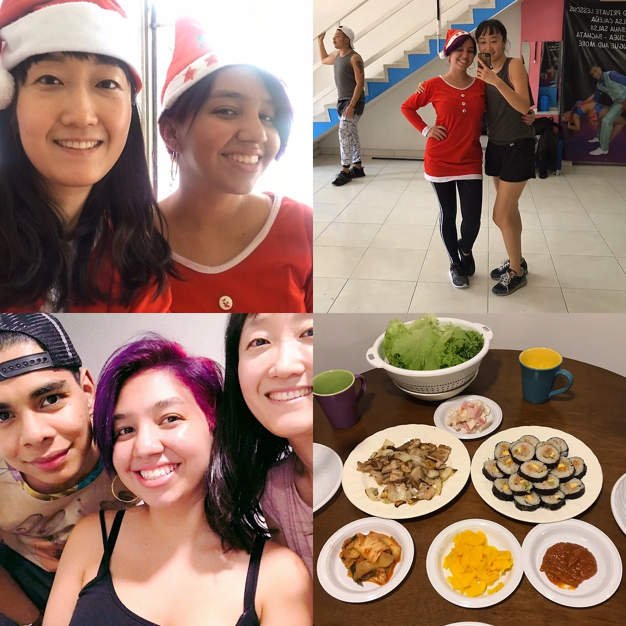 페르난다와의 바차나 레슨 5시간이 끝날 무렵 몇 시간 더 듣기로 하고 그게 끝나면 스티븐과의 바차타 수업을 시작하기로 했다. 한 번은 샌들 끈이 끊어져서 신발 수선집까지 데려다준 페르난다가 고마워 식사 초대를 했는데 겸사겸사 스티븐도 같이 불렀다. 이제 앞으로 스티븐 수업을 들어야 했기에 친해질 겸! 많이 준비하지 않은 소박한 저녁상을 어찌나 맛있게 먹던지 내 기분마저 좋게 해 준 페르난다와 스티븐. 참치마요 김밥과 삼겹살은 역시 통할 줄 알았어! 특히 삼겹살 어떻게 만들었냐고 묻는 페르난다에게 딱히 해 줄 말이 없었던 나.