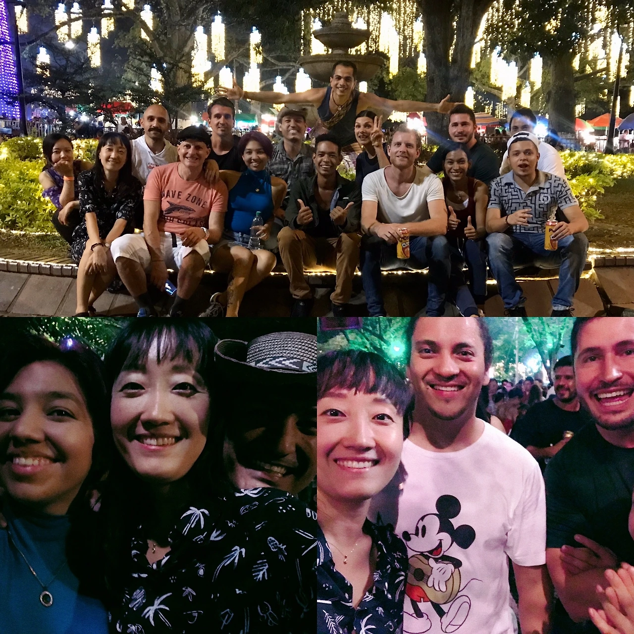 저녁에는 올해의 마지막 소셜 살사 행사에 가려고 꾸역꾸역 일어나 학원으로 고고! 이번엔 다 같이 센트로 공원 쪽으로 이동했다. 페르난다와 갔던 클럽 콜롬비아 맥주 행사장으로 가네? 게다가 오랜만에 남초!! 보통 여자가 더 많았는데 이 날 모인 다국적 여행자들이 거의 다 남자였다. 다들 살사 초짜들이라 남자 많다고 살사 같이 출 사람이 많아진 것은 아니었다.