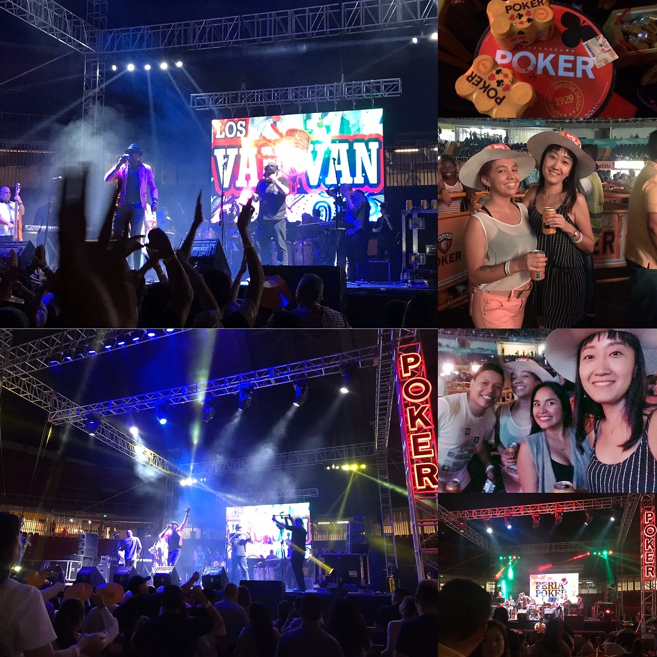 대망의 29일, 콜롬비아에서 현지인들이 가장 많이 마신다는 뽀께르POKER(가장 저렴하다)에서 주최하는 콘서트가 있다고 해서 페르난다와 함께 갔다. 며칠 전부터 페르난다가 같이 갈 것인지 입장료가 5만 페소(약 18,000원)라고 미리 알려줬었다. 뭐 이리 입장료가 비싼가 했는데 들어가 보니 무대 앞자리인 데다가 들어가자마자 아이스박스에 맥주캔을 얼음과 함께 가득 담아주고 탁자에 의자까지 있었다. 이 좌석이 아니면 1층은 모두 스탠딩! 우리 자리 뒤에 있던 바리케이드가 스탠딩 구역과의 경계였다.