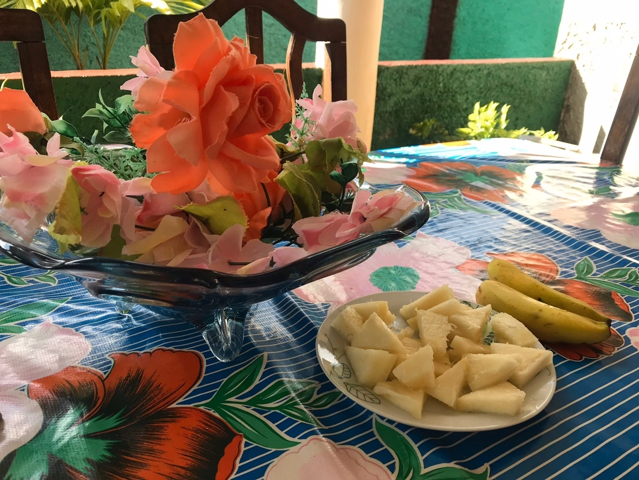 어찌나 강조하며 소곤대던지. 그렇게 해서 이 까사에 묵게 되었다. 보통 저녁식사를 까사에 주문하면 인당 10쿡에 먹을 수 있는데 가성비로 따지면 처음 간 까사보다 더 저렴해서 바로 짐을 풀었다. 조석식 포함에 인당 15쿡이면 정말 저렴한 가격이다. 게다가 식탁에는 웰컴 과일이!! 배도 고프고 목도 말랐는데 어찌나 맛있던지!!