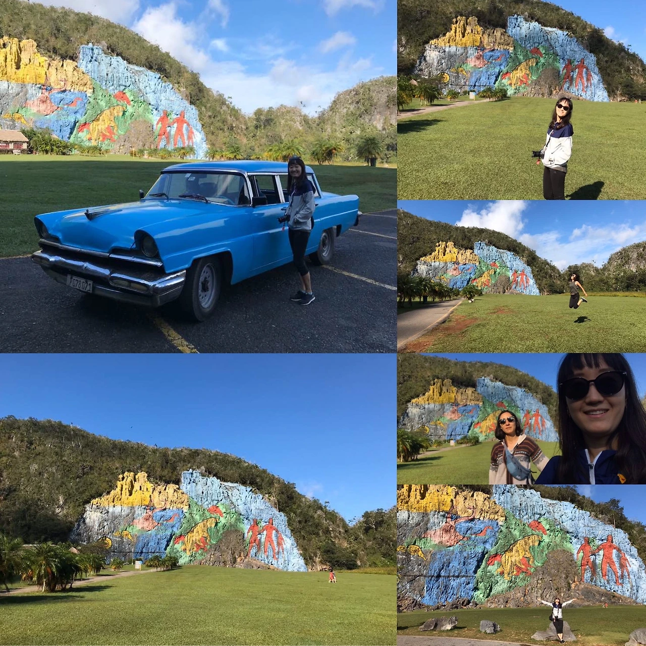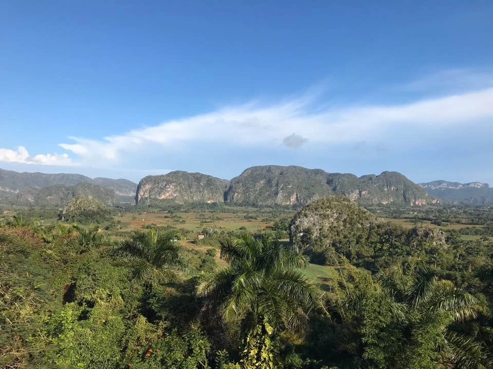 투어 버스를 타고 처음 도착한 곳은 호텔 전망대. 여기서 10분 정도 정차했다 출발한단다. 전망대에서 비냘레스를 조망할 정도의 시간으로는 충분했다. 드넓은 들판에 융기된 석회암들. 신선한 공기를 한 움큼들이마시고 버스 탑승했다. 버스에서는 살사 음악이 흘러나와 어깨까지 들썩들썩. 그렇게 또 달려 비냘레스 하면 자주 나오는 벽화에 도착했다. 여기선 내릴지 말지 결정해야 했다.
