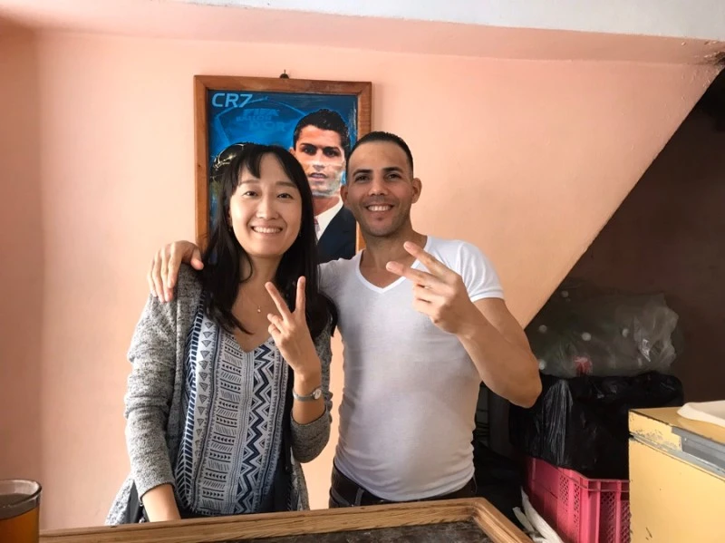 언젠가 또 오긴 하겠지만 언제가 될지 모르니 확답을 할 수가 없었다. 가볍게 할 수 있는 말이지만 뭔가 이런 것도 약속 같은 것이라 생각하기 때문에. 같이 사진도 찍고 연락처도 받았다. 알 수 없는 도메인의 이메일 주소, 쿠바에서만 쓰는 이메일 주소였는데 당시에는 ‘이런 이메일 주소가 있나?’ 했다. 호날두 팬인 아저씨네 가게엔 호날두와 레알 마드리드 사진이 걸려있었는데 내가 원하던 대로 우리 사이에 호날두가 나오게 사진이 잘 담겼다.