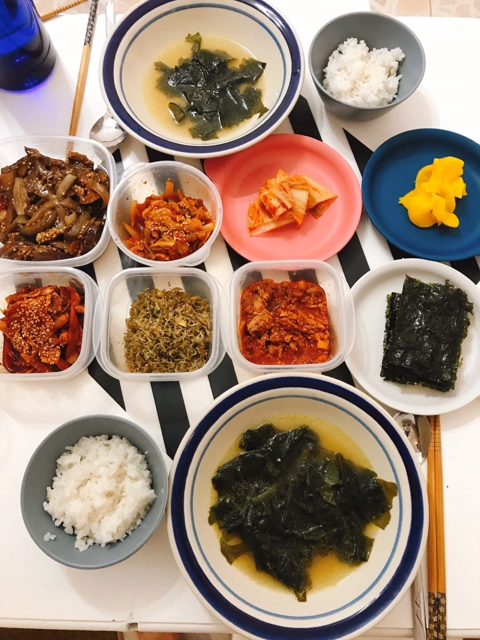 이번 생일은 생일상에 공을 들였다. 집에만 있어서 그런 이유도 있었다. 시간 부자니까. 나름 신장금인지라 내 생일은 10첩 반상을 준비하겠다고 전날 이것저것 건어물부터 꺼내 볶고 무치고 캔 따고 갖가지 음식 만드는데 분주했다. 내 생일 상 차린다고 이렇게 심혈을 기울인 것은 처음이었다. 소고기는 없어 참기름 미역국으로 대신했다.