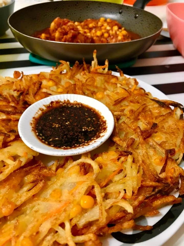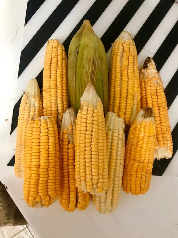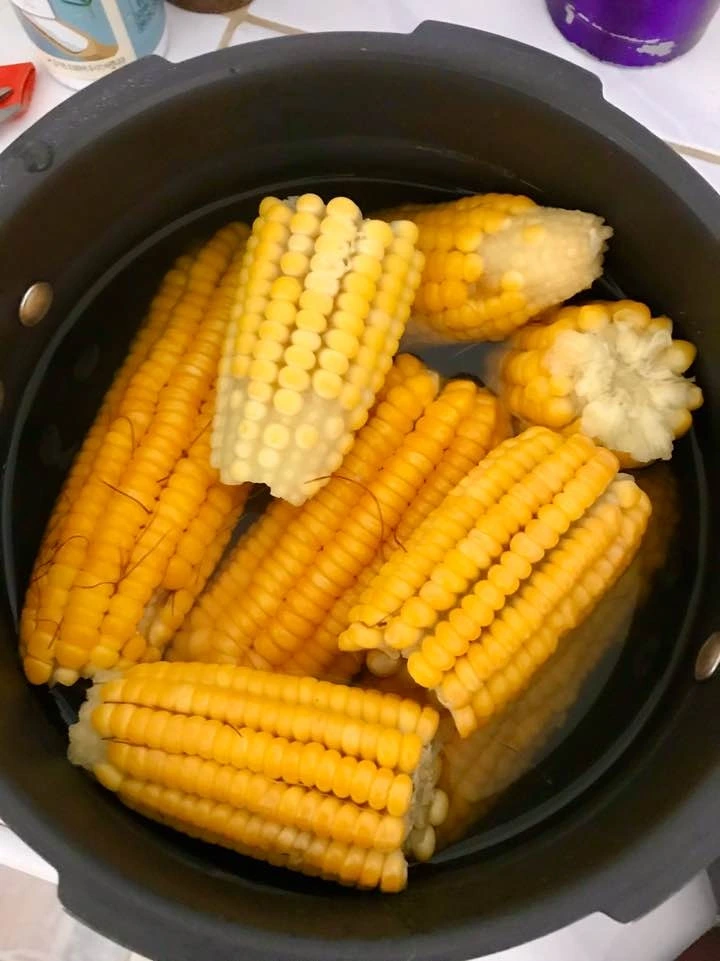 옥수수는 당일에 다 처리하지 않으면 딱딱해지기 때문에 재가열을 해야 한다. 하지만 딱딱해도 괜찮다. 재가열해서 먹을 수 있는 요리는 많다. 밥에 넣어서 옥수수밥으로 먹거나 양념치킨 만들어 옥수수를 알알이 살살 뿌려주면 더 맛있고 보기에도 좋다. 감자채전에도 옥수수 넣어 먹고 따로 옥수수 전도 만들어 먹고 나중엔 S에게서 나눔 받은 치즈로 콘치즈도 해 먹었다.