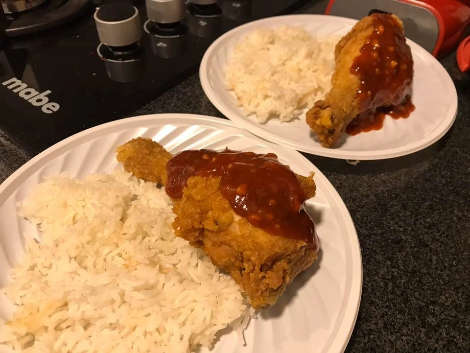 양 조절 실패. 더 많이 했어야 했지만 양념치킨 닭다리로 배 채워지길 바라며 각자 개인 접시에 치킨과 밥을 담아 나눠줬다. 양념소스는 절반 정도만 뿌렸다. 매워서 못 먹을까 봐 걱정했는데 다들 잘 먹네? 빅터는 이것도 맵다고 못 먹더라는. 매운 음식 못 먹는다고 하더니만 정말 못 먹나 보다.