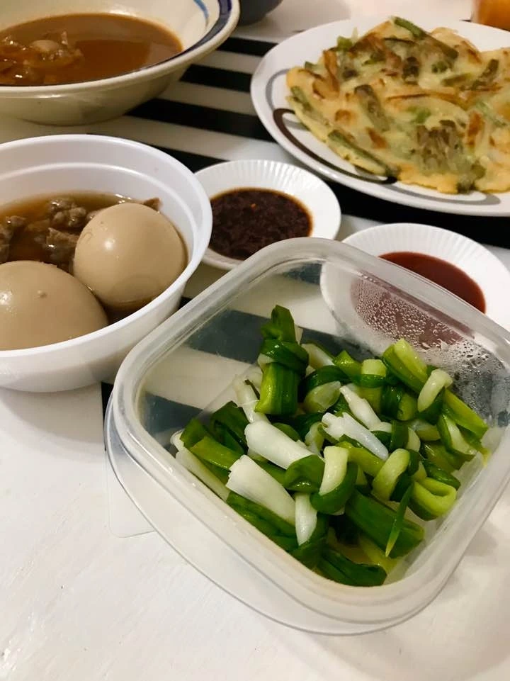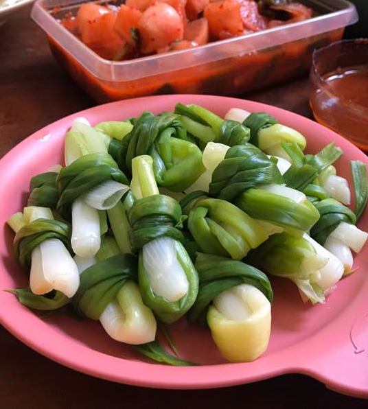 쿠바에서 제일 구하기 쉬운 재료가 파다. 쭉쩡이 같이 상태가 안 좋긴 하지만 그래도 파는 쉽게 살 수 있다. 양파는 금값 수준으로 비싸지만 울며 겨자 먹기로 산다. 그래서 고기 먹을 때 꼭 파절이를 만들거나 반찬으로 파를 데쳐 초고추장에 찍어 먹었다. 파데침을 한 번 만들기 시작했더니 굴 속의 호랑이랑 곰이 된 것처럼 매일 파만 먹었다. 작년 5월에 우리 집에 오셨던 분이 파 묶기 신공을 보여주셨었는데 그분의 실력은 따라갈 수가 없었고 처음 몇 번 파 묶기를 시도했다가 너무 손이 많이 가기도 하고 파 묶다가 뜻대로 되지 않아 성질이 나기도 해서 나중엔 먹기 좋게 잘라먹었다.