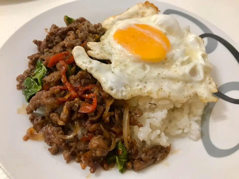 나처럼 체류 중인 S랑 대화 중에 그런 말을 한 적이 있었다. 삐까디요 줘도 안 먹어 지겨워 그만!! 그 정도로 지겹게 먹은 것이 삐까디요, 바로 다진 고기다. 두부는 없었지만 없어도 부쳐지긴 하니 동그랑땡을 자주 해 먹었고 가지와 함께 볶아 먹거나 한 번은 태국요리 팟카파오무쌉(돼지고기바질볶음)도 해 먹었다. 바질가루만 있었지만 그래도 얼추 맛은 비슷하게 나서 되려 나 스스로 놀랐었다.