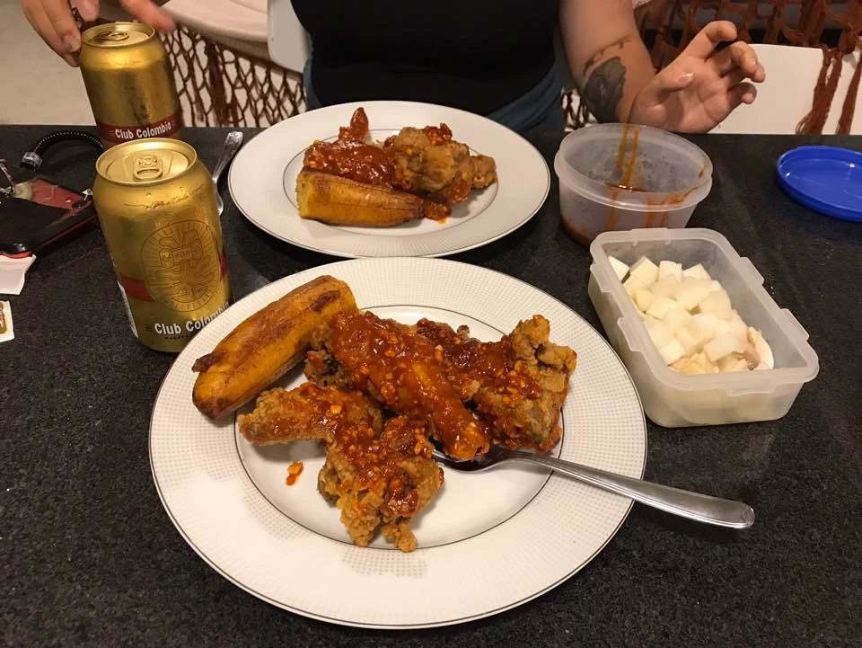 보기 드문 쿨한 친구와의 만남은 우리 집에서 밥 먹으며 이어졌다. 이사 가기 전 마지막 손님. 그리고 칼리를 떠날 때까지 나와 함께 많은 시간을 보내 줄 소중한 동생이자 친구 N. 띠동갑 더 나는 나이 차를 극복하고 우린 그렇게 밥상머리에서 행복한 시간을 보냈다. 밖에서 사 온 프라이드치킨에 직접 만든 매콤 달콤 양념소스를 얹고 미리 만들어 둔 치킨무와 맥주를 함께하니 이보다 더 맛있을 수 있을까?