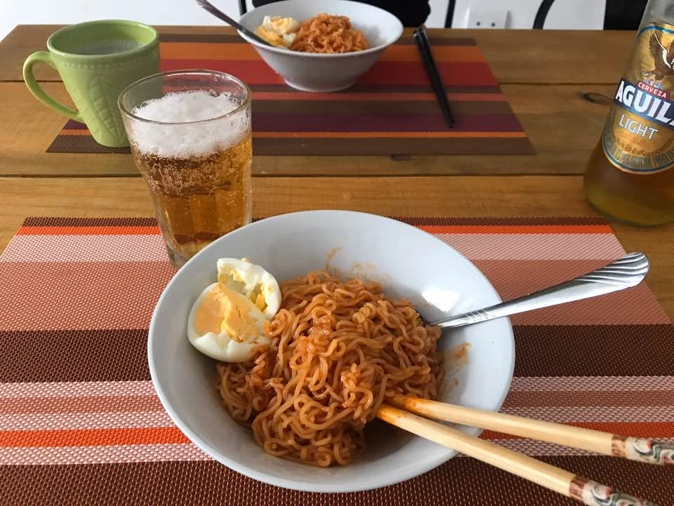 우린 같이 그룹레슨 학원도 다니고 개인 레슨 학원도 다니며 매일 만났다. 학원들을 다 소개해준 것도 나. 생각해보면 난 무슨 브로커처럼 콜롬비아 칼리로 오는 한국 사람들에게 내가 다니는 학원을 많이 소개해줬다. 치킨을 먹은 다음날, 칼리를 떠나기 전까지 지낼 집으로 이사를 한 후 N이 갖고 있다는 찰비빔면을 먹으러 그녀의 호스텔로 향했다. 한국인 사이에서 이제 유명한 호스텔이 된 아구아카테 호스텔. 키미 & 수동이와 함께한 추억이 깃들은 그곳에서 난 N과 찰비빔면의 추억을 또 남겼다.