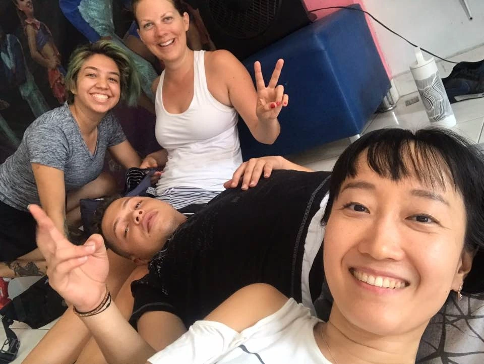 다양한 국적의 여행자들이 자리에 앉아 우리를 지켜보고 있었다. 관객이 있는 상태에서 춤을 춰 본 것은 처음이라 긴장도 되고 실수할까 봐 걱정도 되고 머리가 하얘 질 즈음 우리의 살사 쇼는 시작되었다. 칼리 스타일 살사를 하는 중에 스텝 하나를 좀 늦게 시작한 것 외에는 성공적. 그리고 제이슨과의 춤이 끝날 무렵, 갑자기 제이슨이 나가고 급 빅터가 들어오더니 자연스럽게 살사를 이어갔다. 그리고 브라이언으로 이어지고 다시 제이슨으로 마무리.