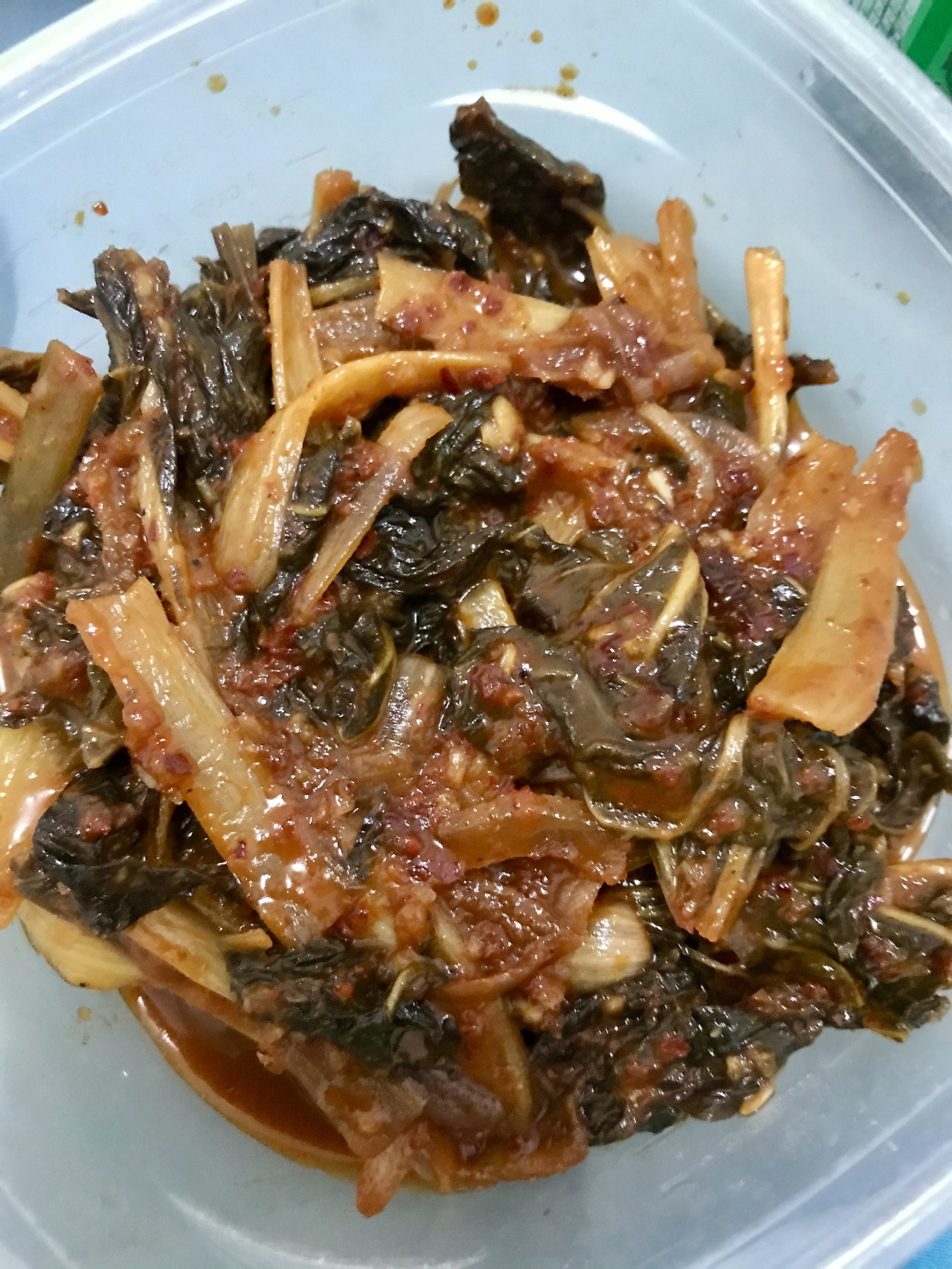 "이게 그 신김치야! 네가 상해서 버리라고 했던 것!"