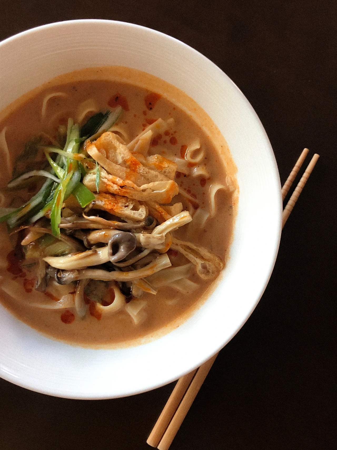 국물 채수용 다시마 2-3개, 건표고버섯, 물 200mL, 두유 250mL 양념 타이시아 피넛 월남쌈 소스 5스푼(피넛버터 등으로 대체 가능), 두반장 2스푼, 간장 4스푼, 설탕 2스푼, 다진 마늘 1/4스푼, 라유 내 맘대로(필수!), 식초 쪼록, 후추 쪼록 면 아무거나 토핑 파, 버섯, 유부, 콩단백, 청경채, 숙주 등 집에 있는 재료