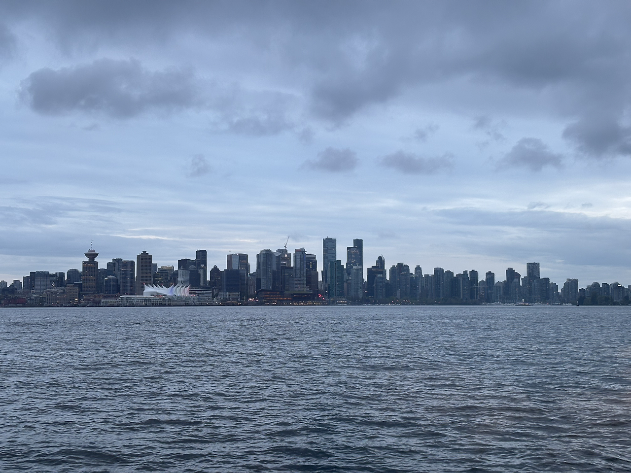 바다 건너 본 흐린 날의 밴쿠버 풍경