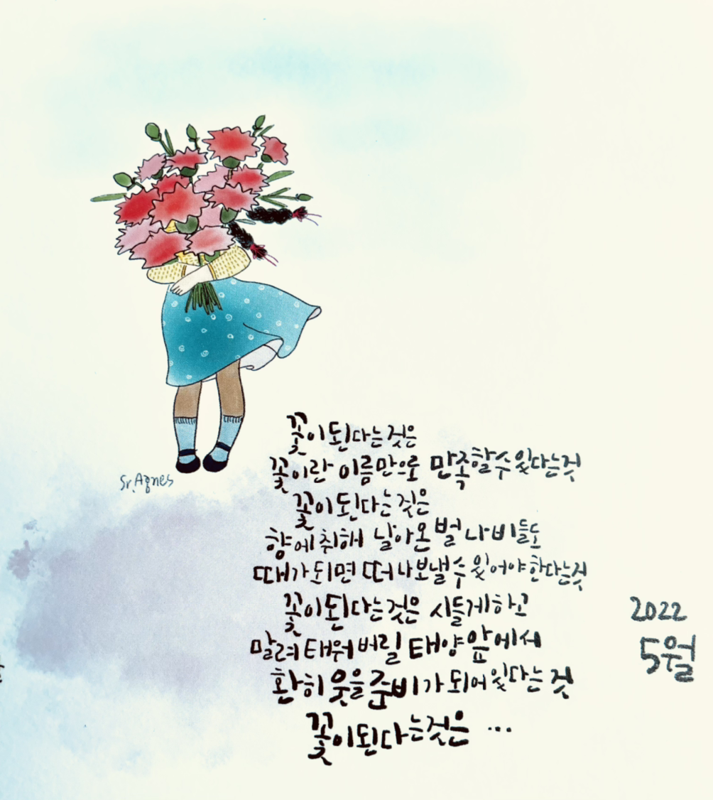 지난 오월 우리 대학교에 계신 류상애 아녜스 수녀님께서 만드신 달력을 보다가 '참 예쁘다'는 생각이 들었다. 그 생각은 천천히 자라더니 '나도 캘리그라피를 배우고 싶다'는 소망에까지 이르렀다.
