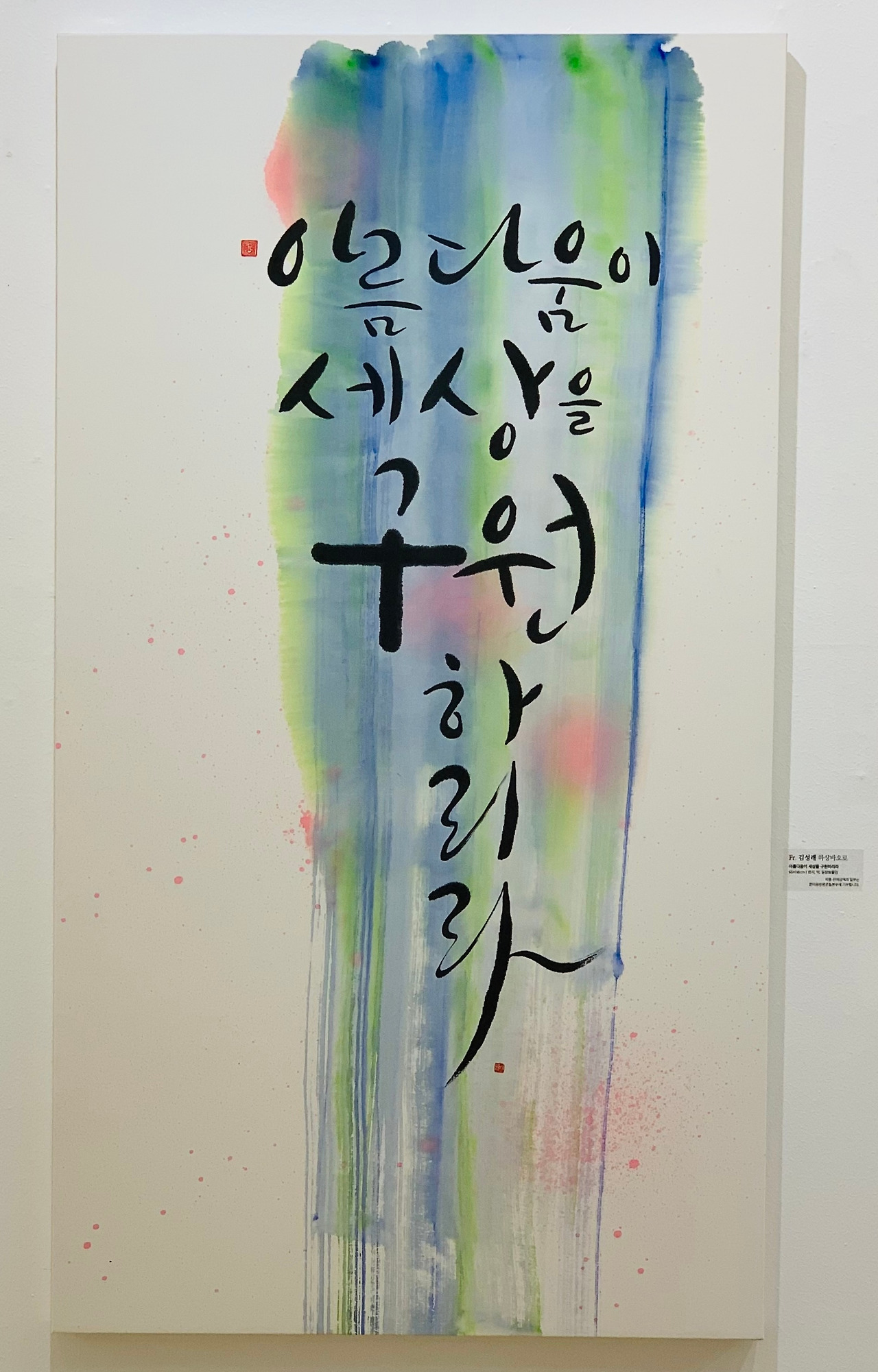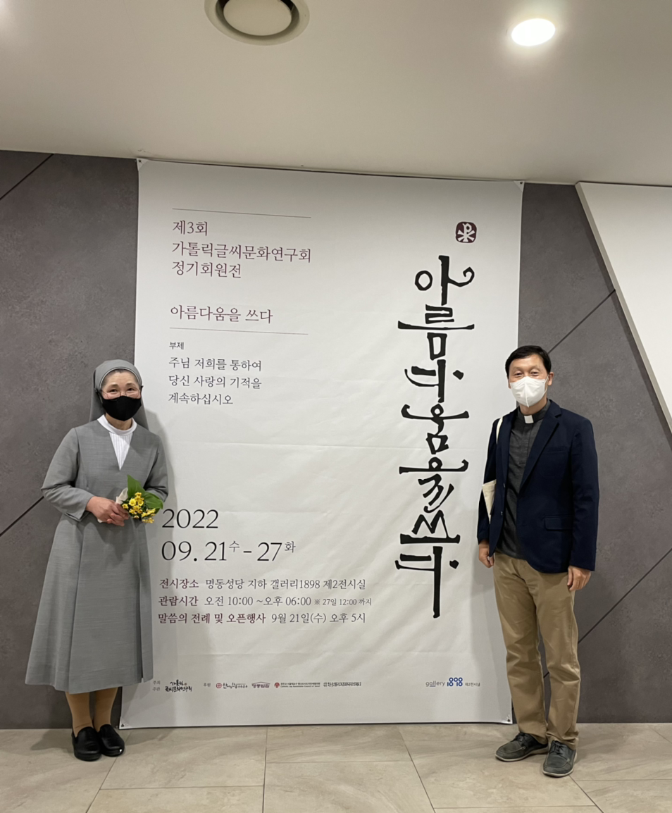 지난 여름 학교에 계신 류상애 아녜스 수녀님으로부터 캘리그라피를 배우기 시작했는데 선무당이 사람 잡는다고 '전시회에 한번 내 보실래요?'라는 수녀님의 질문에 아무 생각없이 예라고 한 결과를 마주하게 되었다.