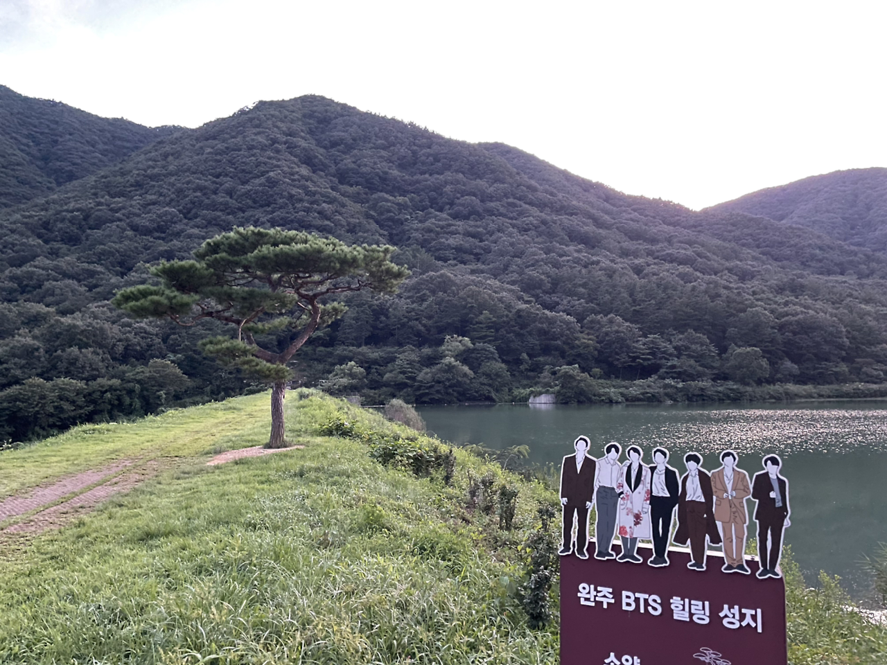 오성한옥마을에서 멀지 않은 곳에 BTS 성지가 있다. 오성제라는 아름다운 저수지에 서 있는 한그루 소나무가 바로 BTS가 와서 화보를 찍은 곳이기에 아미들에게는 성지라고 한다. 나도 잠시 아미가 되어 그 아름다움을 느껴본다.