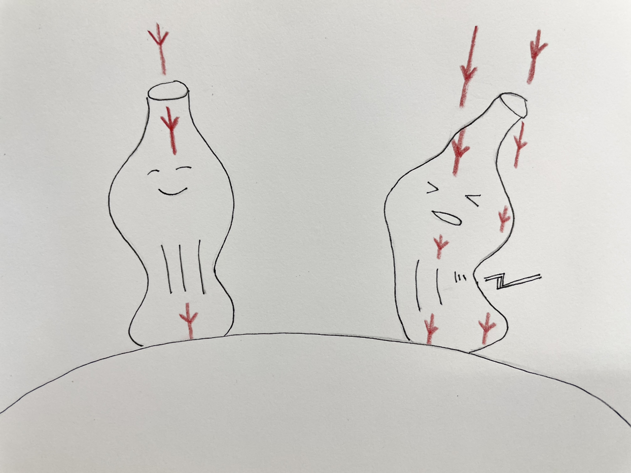 그때 나는 쭈쭈바를 생각했다. 똑바로 서 있어야 할 몸에서 상당 부분을 차지하는 머리가 앞으로 쏠리면서 중력을 두 배로 받게 되어 몸에서 가장 약한 옆구리가 터진 것이다. 우숩고 슬프지만 가장 확실히 와 닿는 설명이었다.
