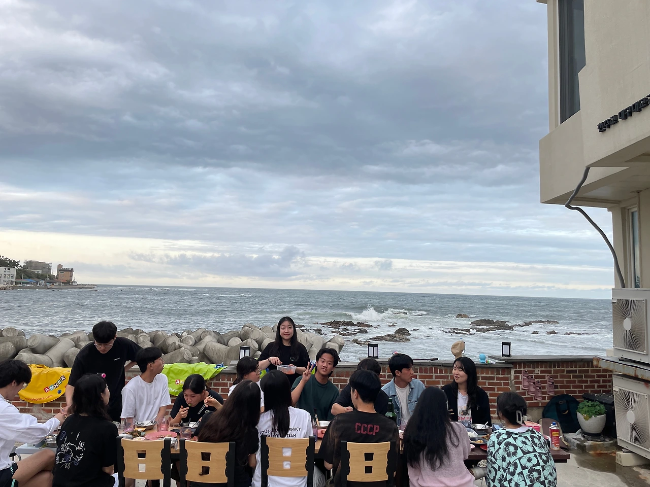 평화자리 앞마당에서 고기파티를 벌였다. 해가 저무는 바닷가에서 지글지글 익어가는 삼겹살은 보는 것만으로도 배가 불렀다. 술을 한잔씩 기울이며 내일 걱정없이 한 학기를 잘 보낸 우리 모두를 위해 건배를 했다.