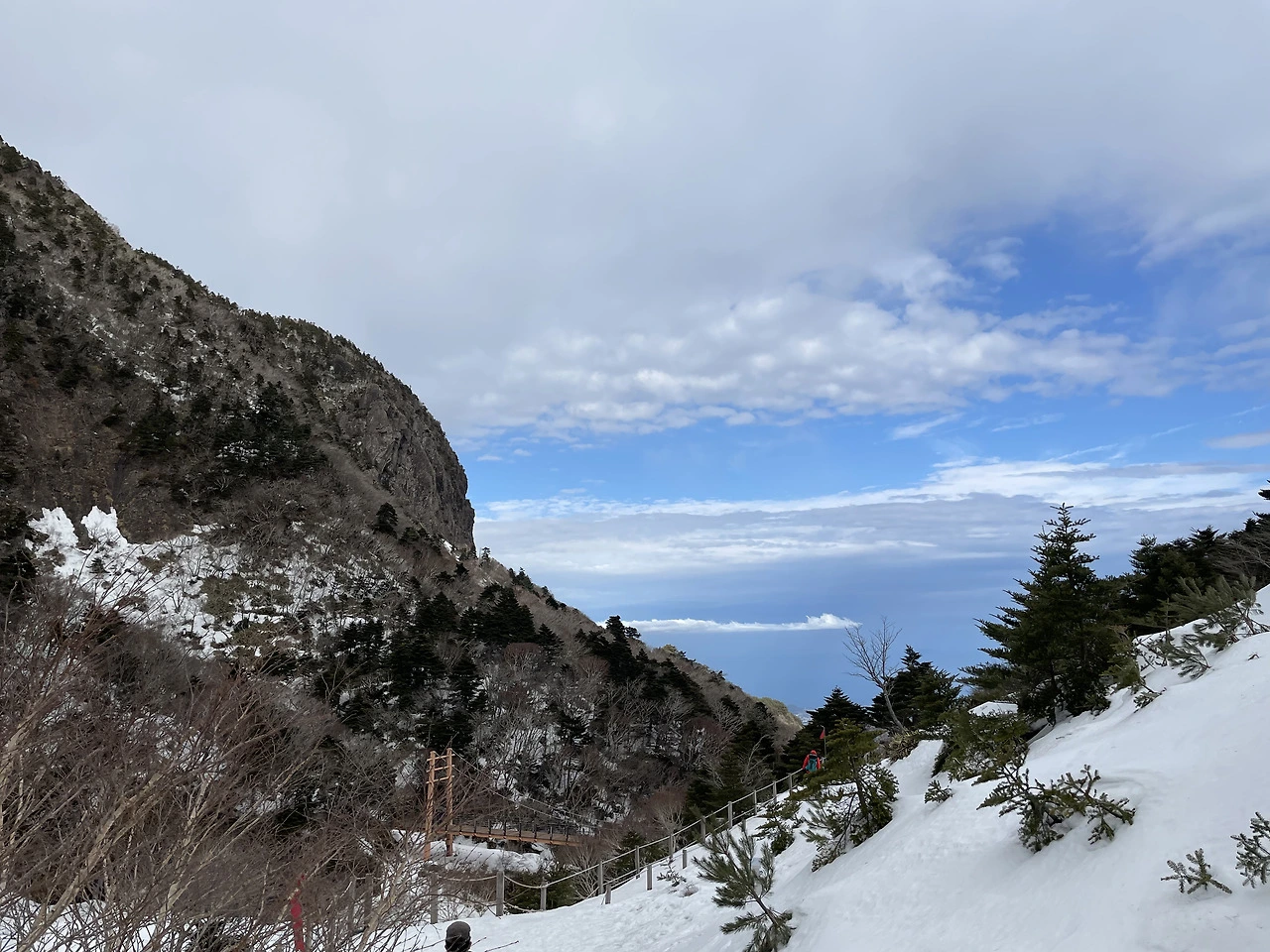 서둘러 관음사 방면으로 들어섰는데 눈보라와 얼어붙은 길 덕분에 내려가는 것도 쉽지 않았다. 그럼에도 쏟아지는 땀을 닦으며 헉헉거리며 겨우겨우 올라오는 사람에 비하면 나는 참 운이 좋은 편이었다.