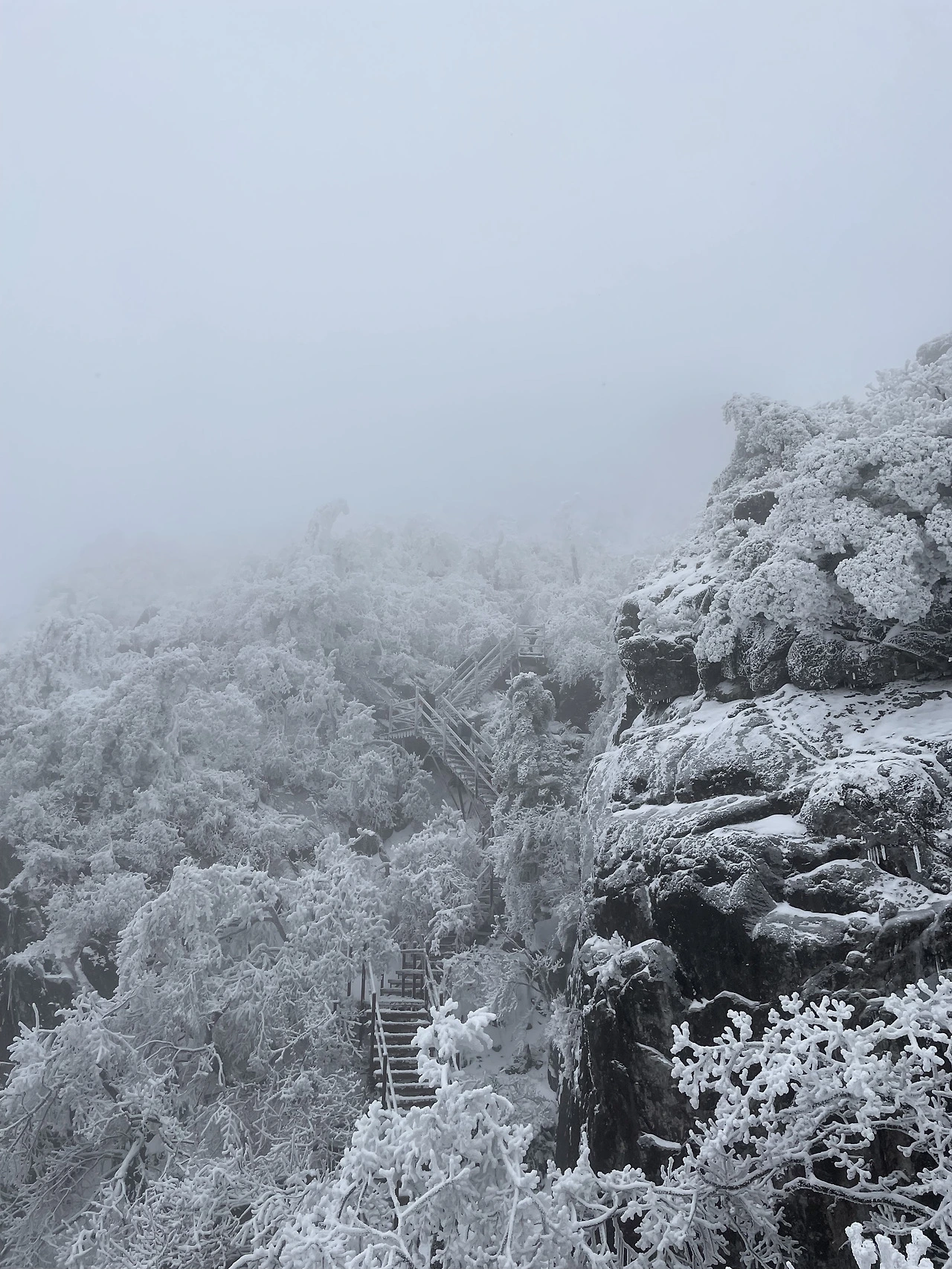 백운동 탐방센터에서 출발해 가장 험준한 만물상 코스로 올랐다. 점점 가빠지는 호흡에 따라 눈이 점점 쌓이더니 어느새 안개 속을 걷고 있는 나를 보았다. 그리고 마주한 상고대! 상고대는 나무서리라고도 불리는데 영하의 온도에서 액체상태로 존재하는 미세한 물방울이 나무 등에 하얗게 얼어붙어 눈꽃을 피운 것을 말한다.