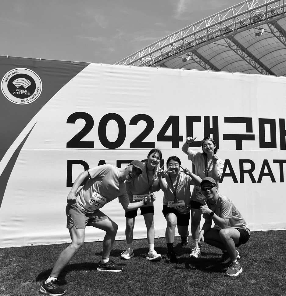 무엇보다 좋은 벗들과 함께 달렸고, 멈추고 싶었던 마지막 3킬로미터 오르막을 거쳐 대구스타디움으로 들어서자 울려 퍼지는 응원의 소리, 나의 이름을 부르는 반가운 목소리에 없던 힘도 솟아나 신나게 마지막 백미터 트랙을 달릴 수 있었다.