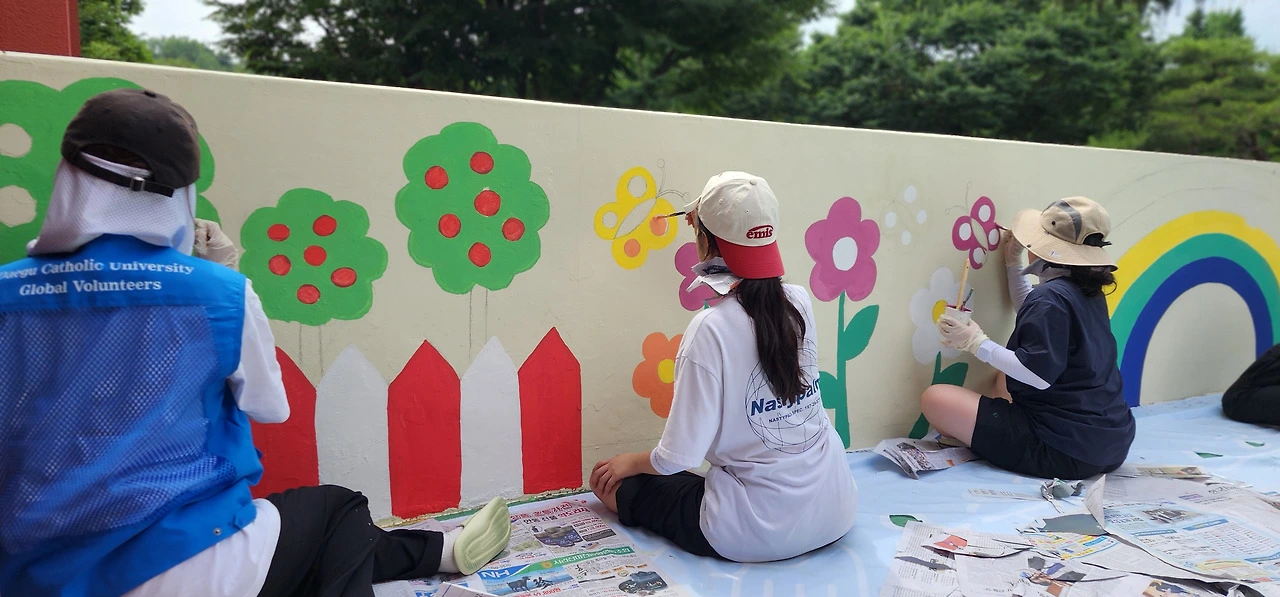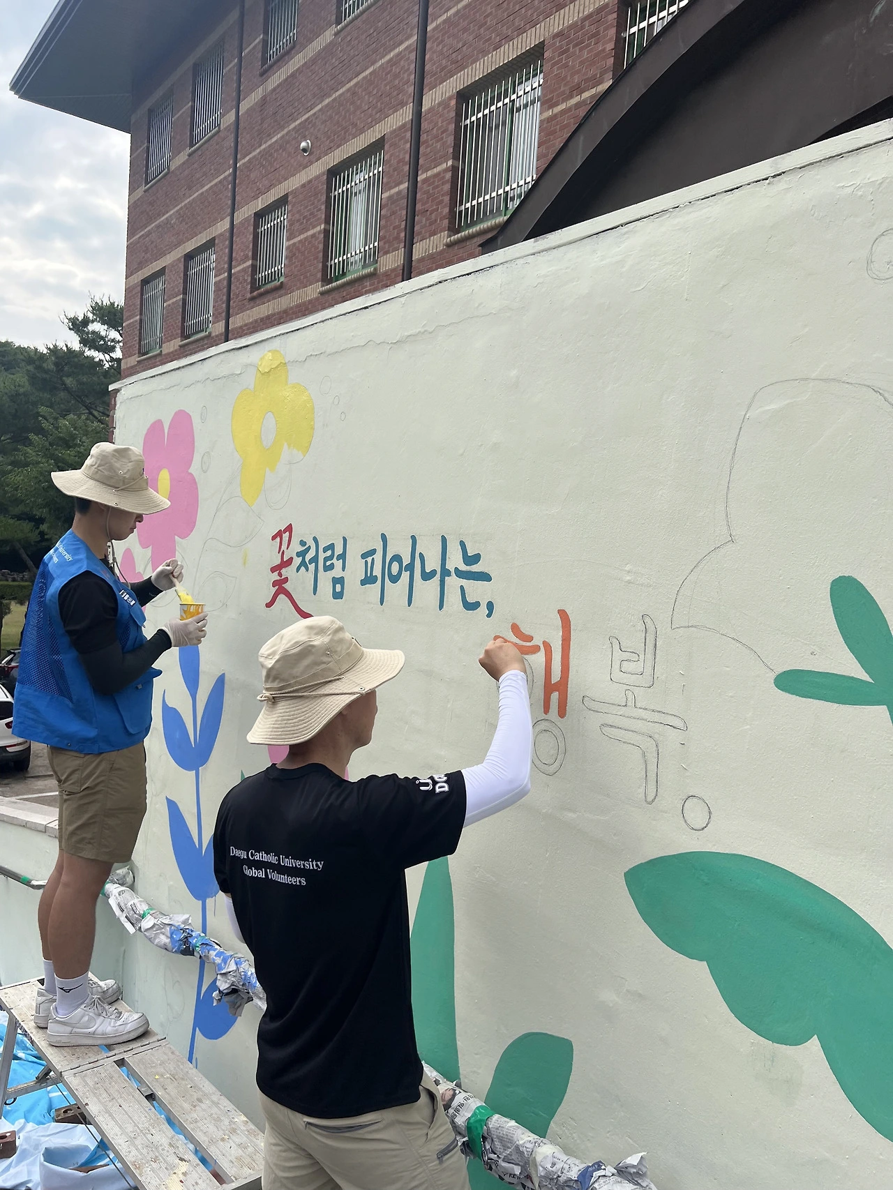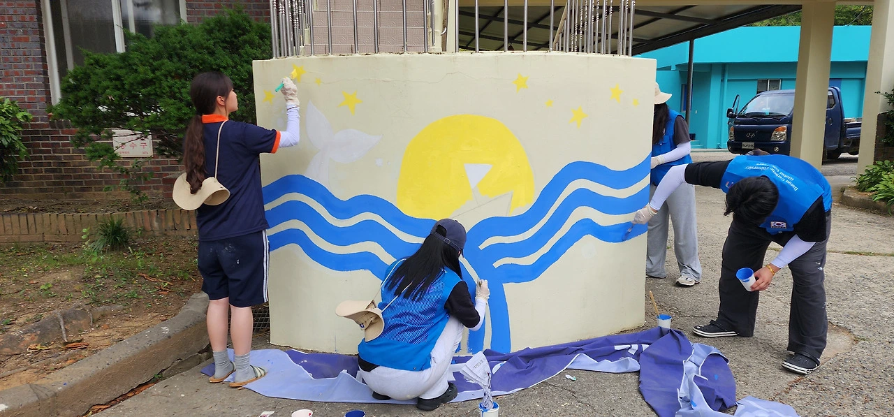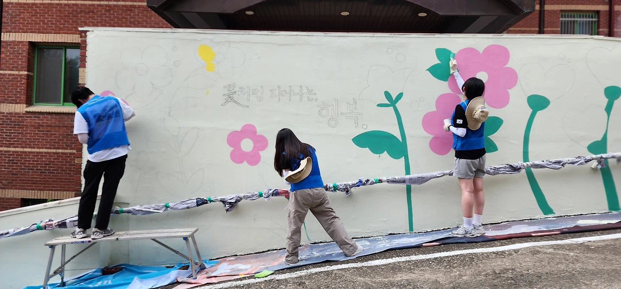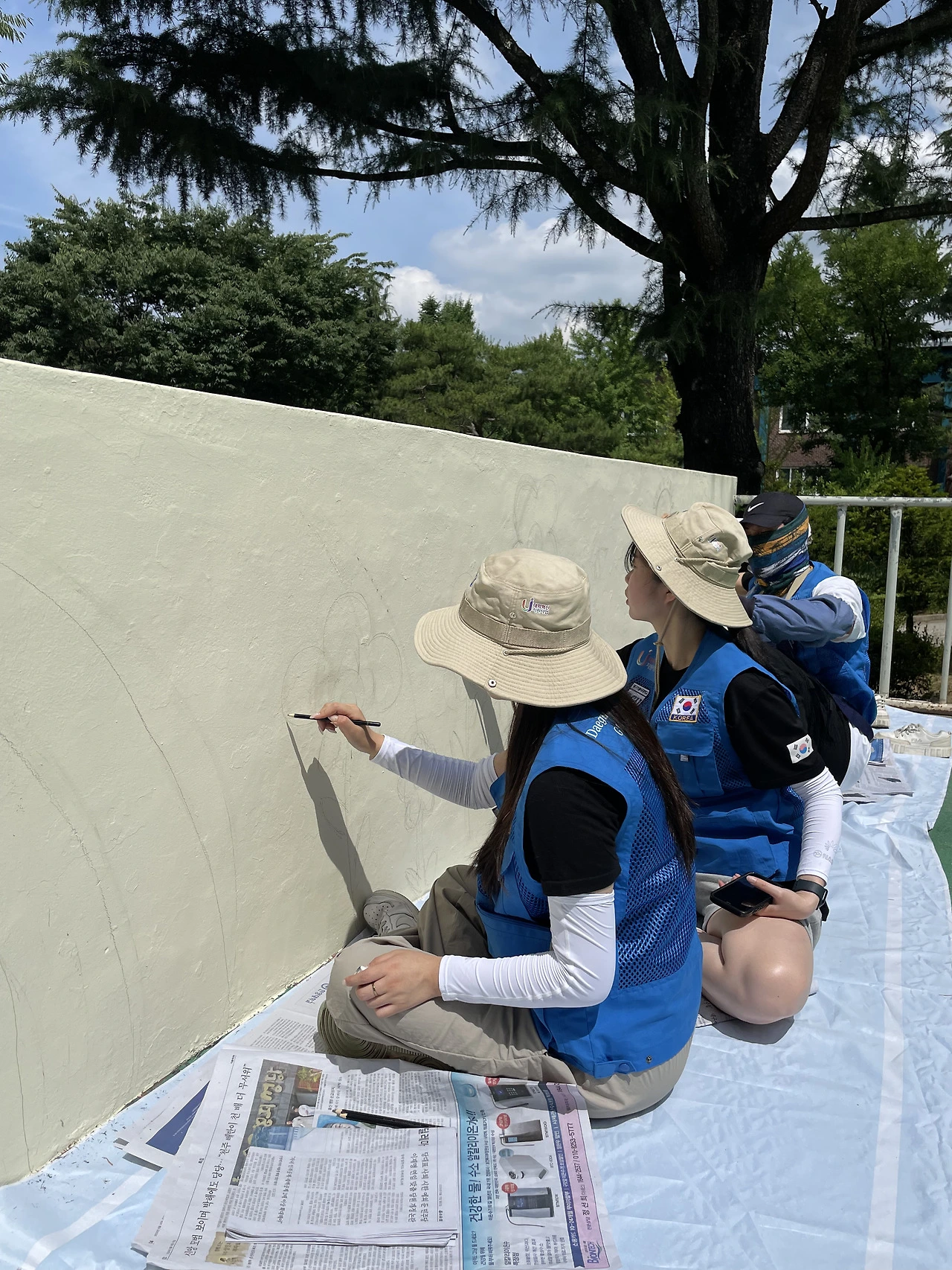 벽화그리기는 세 곳에서 진행되었다. 미리 작업을 분담한 학생들은 도색, 도안, 색칠 등의 작업에서 자신이 맡은 일에 최선을 다했다.