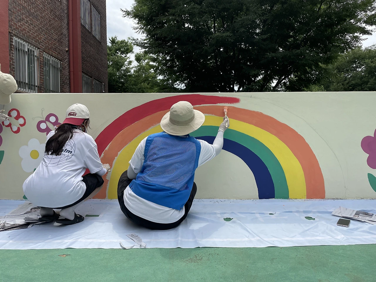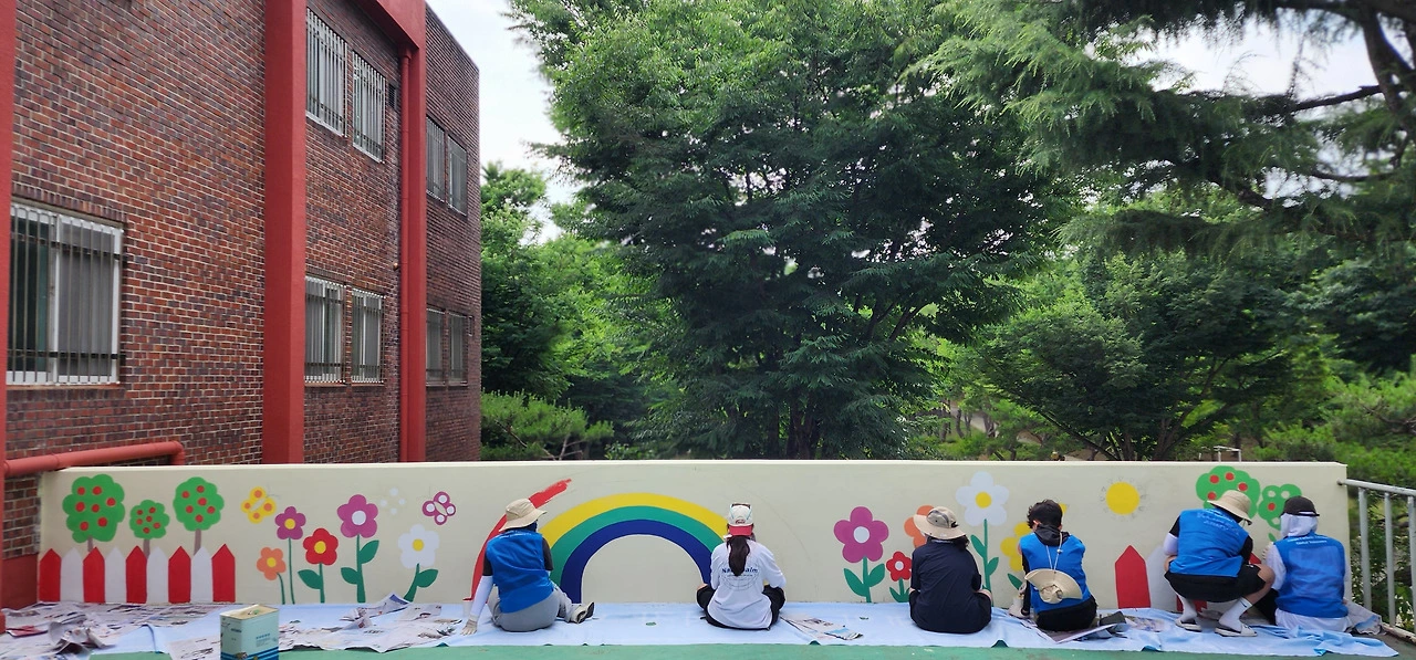 한 해 가운데 낮이 가장 긴 하지의 태양은 무척 따가웠다. 벽화그리기를 위해 도색작업을 하는 학생들 얼굴에서 땀이 뚝뚝 떨어졌다. 그래도 회색벽을 하얀 캠퍼스로 만들고 그 위에 아름다운 어떤 것을 창조하는 모습이 진지했다.