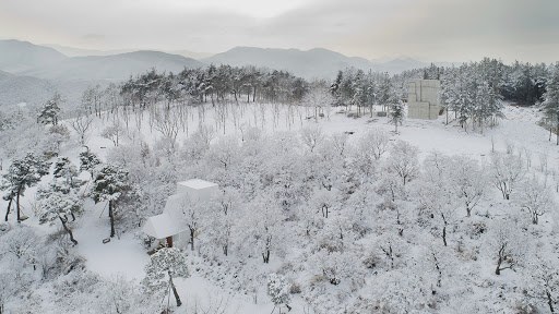 이렇게 놀라운 자연의 진면목 가운데 보석같은 건축물이 하나 둘 모습을 드러냈다. 건축가 승효상이 가장 기세 좋은 곳에 세운 '현암'은 말 그대로 오묘하고 아름다운 집이었다. 지붕에 올라서니 타이타닉의 뱃머리에서 팔을 펼치고 선 듯 했고, 아래 집으로 들어가니 나무와 다다미 바닥과 유리로 사방이 트여져 있어 아늑하면서도 펼쳐진 경관이 놀라웠다. 한 겨울밤 그곳에서 비바람이 몰아치는 팔공산을 바라본다면 자연에 대한 경외심 뿐만 아니라 신에 대한 감정이 더 두터워질 것은 의심할 여지가 없었다.