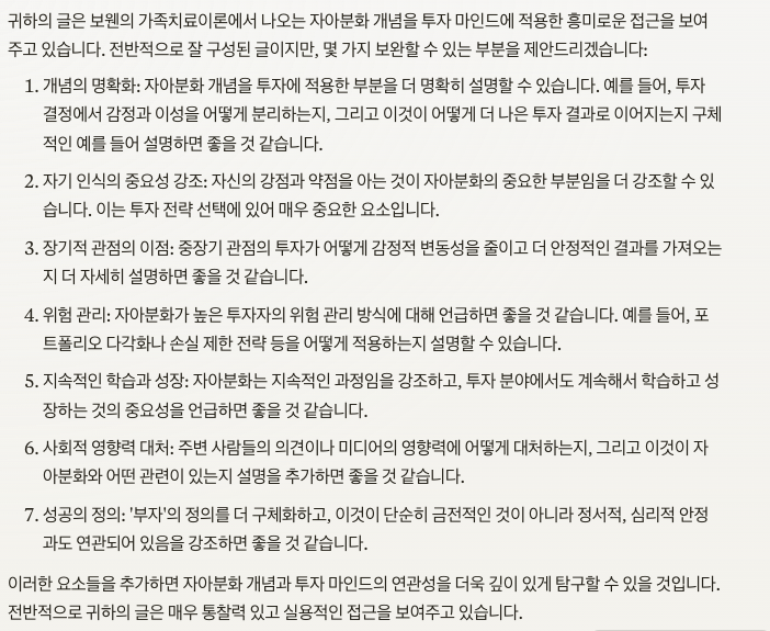 보웬의 가족치료이론에서 나오는 자아분화를 투자마인드에도 적용시켜 보면 어떨까?