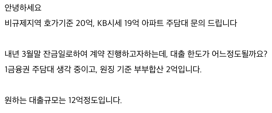 내가 매수한 재건축 아파트도, 상담사 통해 신청했음에도 은행에서 대출을 전면 중지했다는 통보를 받았다.