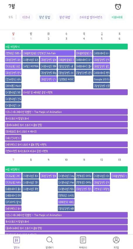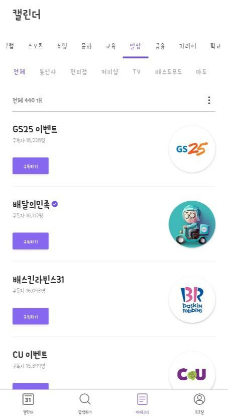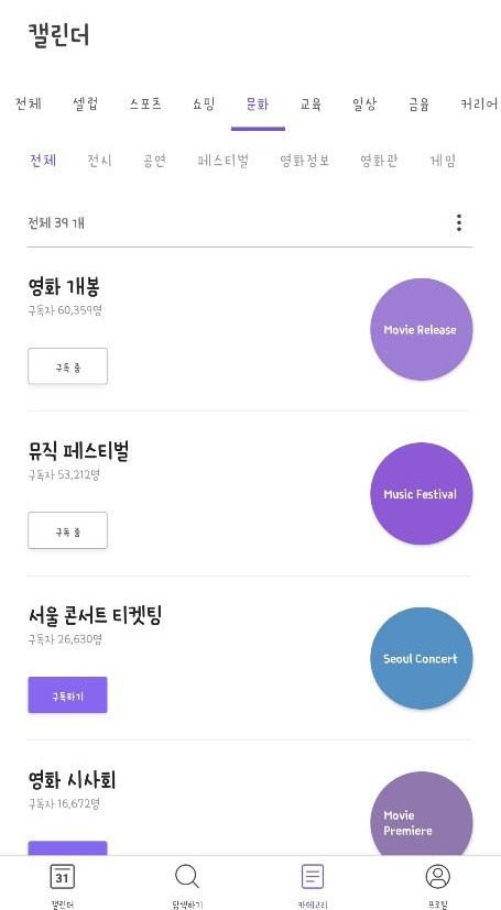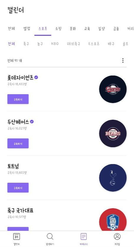 린더엔 매우 다양한 분야의 일정들이 등록되어 있다.