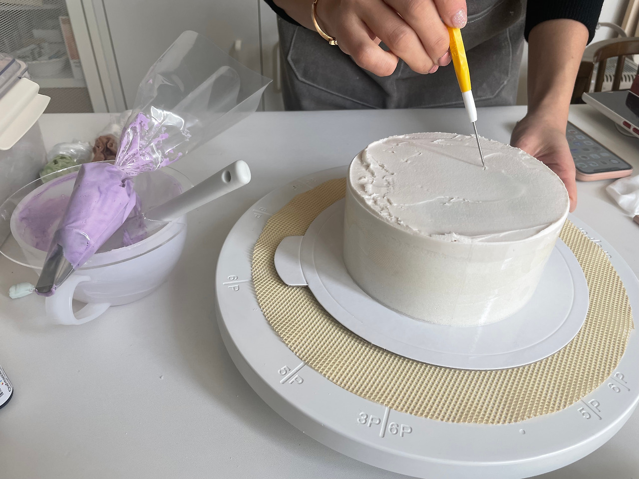 오늘 만든 백설기만 가져가면 너무 아쉬우니 파이핑 기본자세를 복습하는 개념으로 꽃잎 만들어보기를 시작하였다.