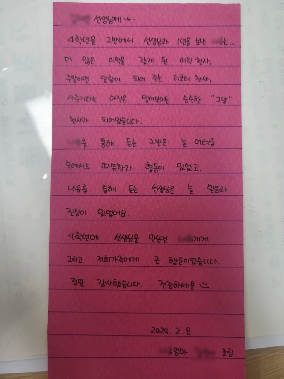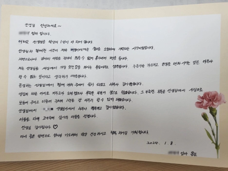 학부모님이 보내주신 손편지