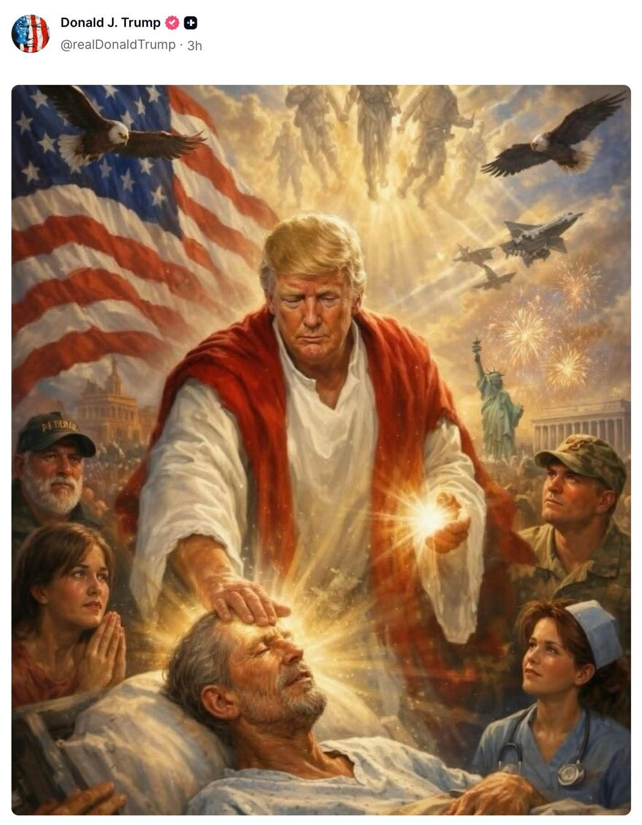 도널드 트럼프는 자신의 소셜미디어에 자신을 예수와 유사하게 묘사한 이미지를 게시했다가 거센 비판 속에 약 12시간 만에 삭제했다. 이 이미지는 병자를 치유하는 장면 속에서 ‘구원자’로 등장하는 형상이었고, 심지어 그의 정치적 지지 기반인 기독교 진영 내부에서도 “신성모독”이라는 비판이 제기되었다. 트럼프는 이를 “의사로 묘사된 것이라 생각했다”라고 해명했지만, 이 사건은 단순한 해프닝으로 치부하기 어렵다. 그는 이미 자신을 “왕”에 비유하거나, 예수의 박해와 자신의 정치적 상황을 동일시하는 발언을 반복해 왔다. 이러한 행위는 독일어로 흔히 “Gott spielen”(신을 연기하다)라고 표현된다. 문제는 이것이 특정 개인의 일탈이 아니라, 권력을 가진 인간에게 반복적으로 나타나는 구조적 현상이라는 점이다.