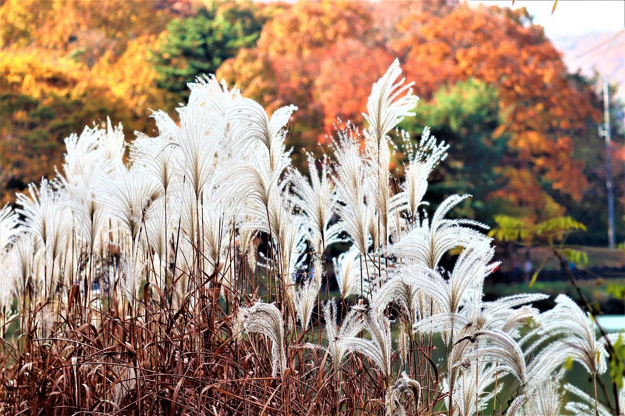 입구 근처에는 적당한 규모의 카페가 있다. 그곳에 이르기 전에 억새가 적당히 피어있다. 이제 겨울이 오면 이 억새도 갈색으로 변할 것이다. 호수 위의 오리들과 더불어 찍어보려고 했지만, 구도가 잘 잡히지 않는다. 억새 위로 떨어지는 햇살이 눈 부신데 사진이 제대로 잡아내지 못한 것 같다.