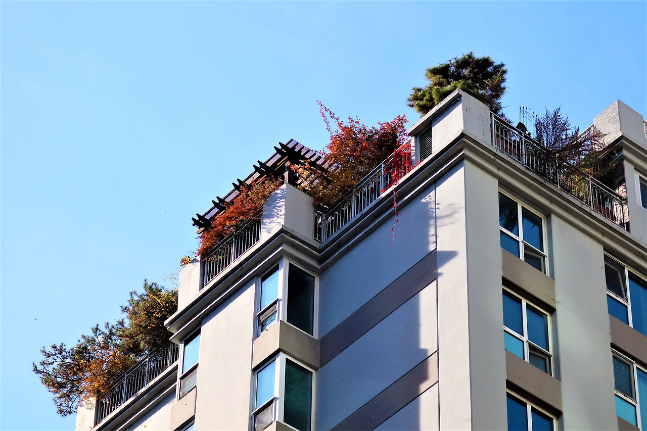 정자동의 어느 지붕 위에 내린 단풍