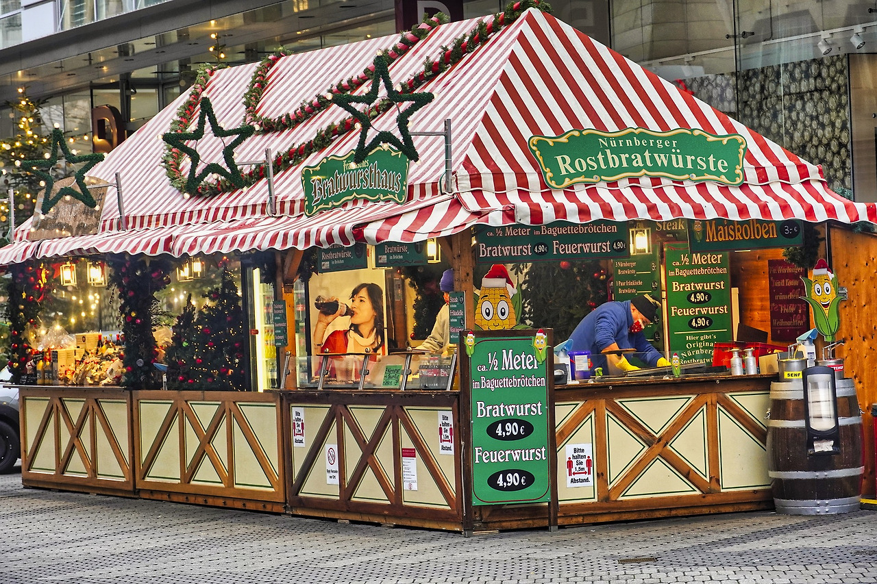 크리스마스 장에 있는 뉘른베르커 로스트부라트부어스트 가게
