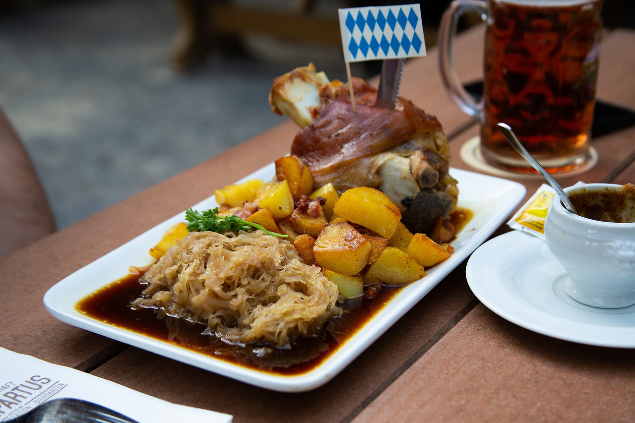 사우어크라우트를 곁들인 전형적인 독일 남부 요리 슈바이네 학세