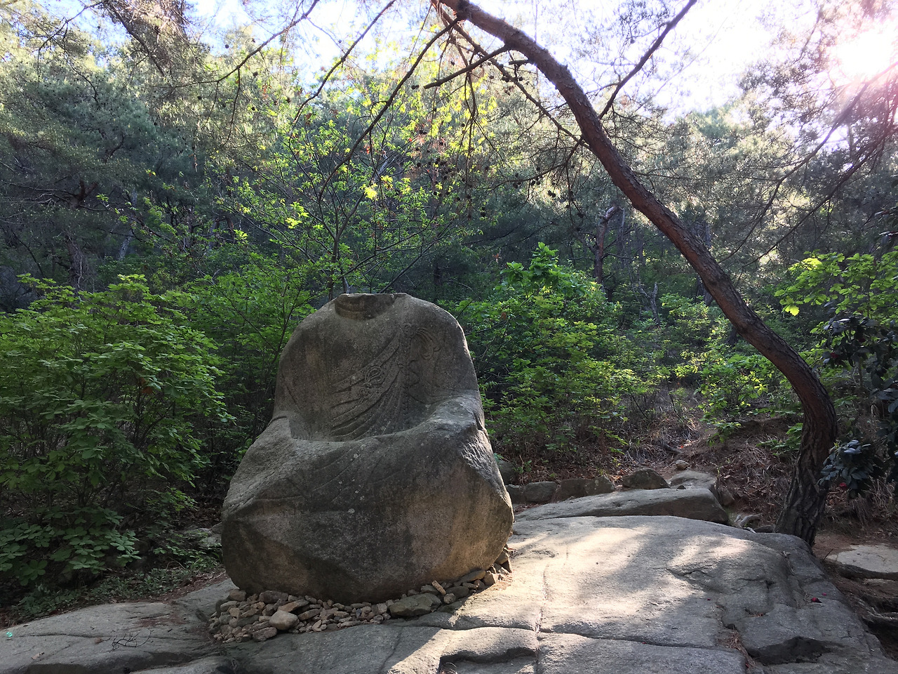 어느덧 정상에 올라 경주를 한 눈에 내려 보았다. 이번 여행에서 가장 인상 깊었던 장면이었다. 탁트인 공간에 평야와 산천이 어우러진 시원한 전경을 보고 있으니, 갖가지 공해로부터 찌들었던 심신이 편안해짐을 느낄 수 있었다. 남산은 마치 나에게 “적체되어 있던 모든 것을 털어 내라” 말하는 듯했다. 그렇게 도반들과 함께 정상에서 망중한에 취해 있었다.