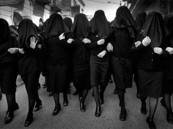 검은 베일을 쓰고, 슬픔을 나누는 여인들.