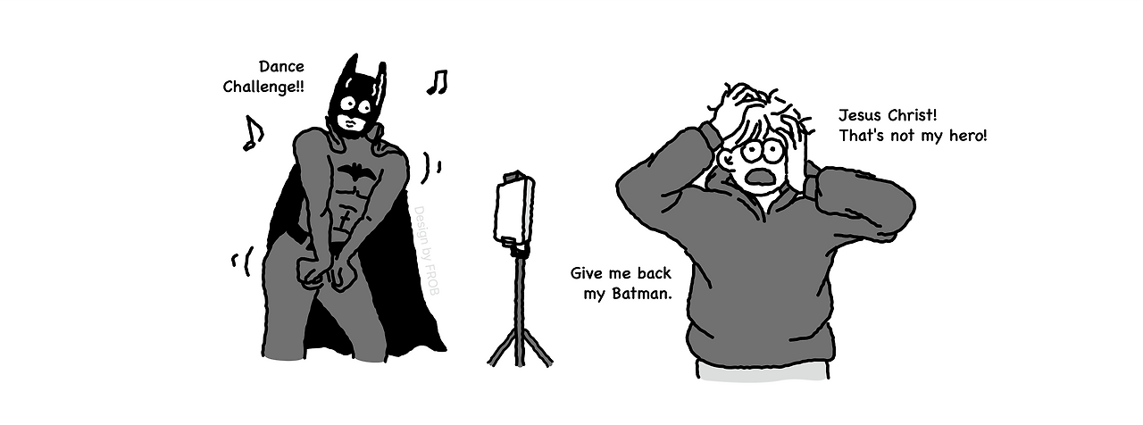 다크하고 시리어스 한 설정의 배트맨이 어느 날 느닷없이 SNS를 켜고 숏폼 영상을 업로드하며, 미소녀 아이돌 같은 애교를 부리고 있다고 생각해 보라. 누가 그 캐릭터에 공감하고 몰입할 수 있을까. 혀 짧은 소리를 내면서 틱톡댄스를 추는 배트맨이라니! 상상만으로도 몸서리가 쳐질 만큼 끔찍하기 그지없다. 그 순간 이미 정체성을 잃은 것이다. 더 이상 그것은 배트맨이라고 할 수 없다. 그건 배트맨이 아니다.