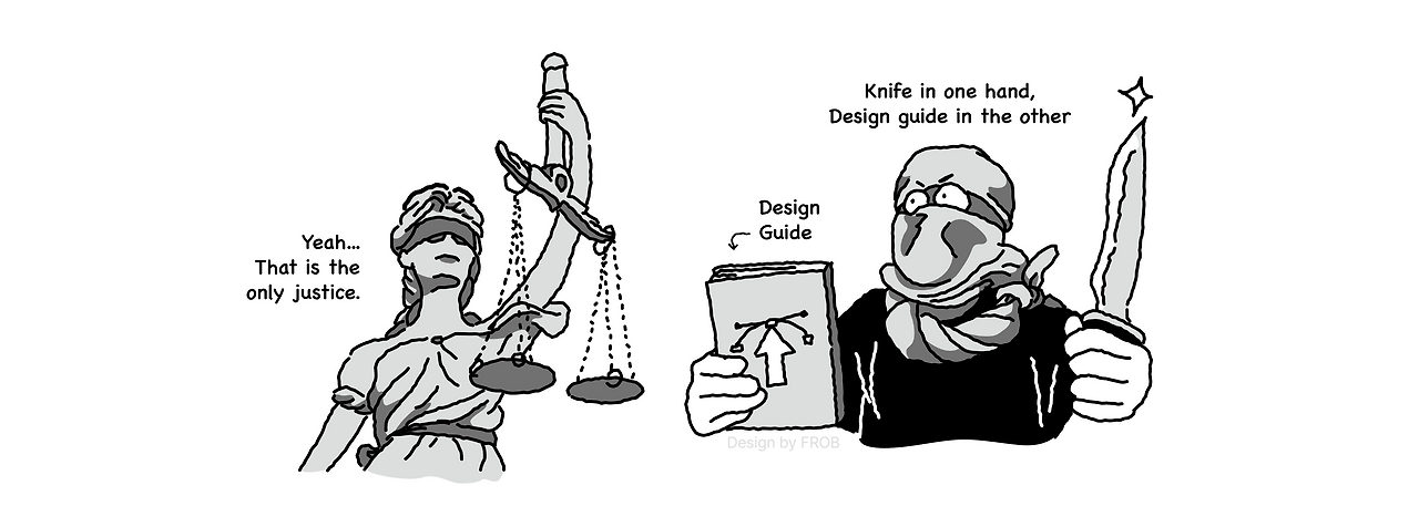 간혹 이 브랜드 가이드를 만드는 일부 디자이너들 또한 흡사 법이라도 제정하는 사람이 된 것 같은 착각을 느끼기도 한다. 그리고 그렇게 공들여 규정한 브랜드 가이드를 어긴 사례들이나, 브랜드 가이드를 무시한 채 제 편한 데로 작업하는 각 담당자들을 발견할 때면 마치 법을 어긴 죄인이라도 본 듯 불쾌함을 느낀다.