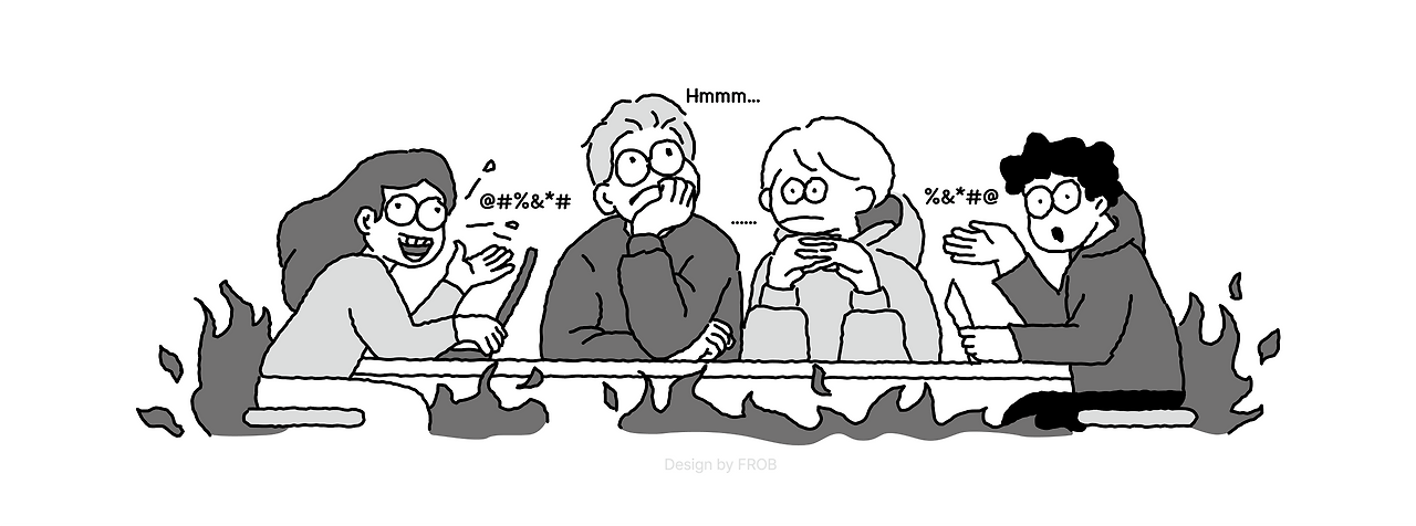 그럼, 먼저 디자인 스튜디오에서 회의는 어떤 분위기일까? 회의에서 새로운 안건을 화두에 올린 직후의 상황을 상상해 보자.