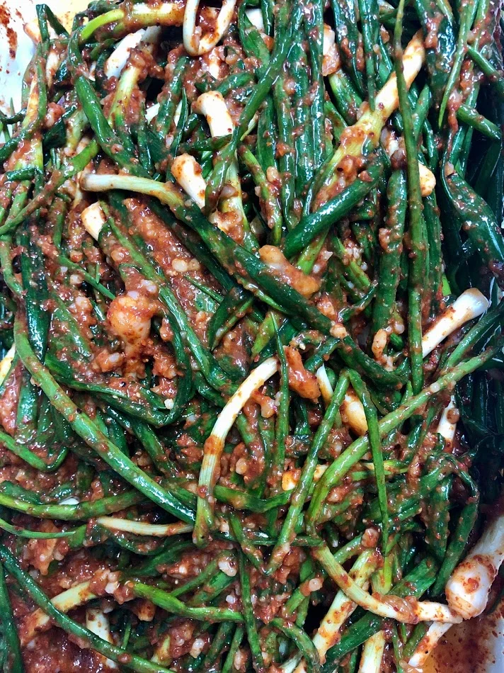이건 친정엄마도 안 해주실 서비스라 원래는 한 주먹만 사서 고명이나 계란말이에 쓰려다가 노선을 바꿨다. 파김치를 담기로 했다. 겨울에 먹는 파김치는 파의 맵싸한 맛이 코를 스치면서 마지막에 쨍한 단맛이 난다. 곰탕을 끓여 밥을 말아 파김치를 올리면 세상 든든하다. 떡만둣국을 끓여 파김치를 같이 먹으면 세상에 두려울 것이 없다. 삼겹살을 구워 파김치랑 먹으면 보양식을 먹은 듯하다. 군고구마에 파김치를 얹어 먹고 막걸리를 마시면 그동안 세상 근심은 사라진다.