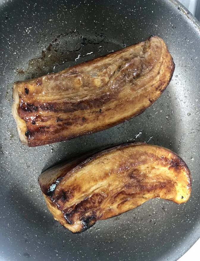 1. 달군 팬에 기름을 약간 두르고 고기 표면에 꿀을 발라 굽는다. 사방을 돌아가며 바싹 굽는다.