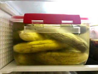 4. 다음 날 오이만 건져 김치통에 넣고 냉장고로 보낸 후, 소금물은 그대로 다시 끓여 반드시 식힌 후에 오이를 담아 놓은 밀폐용기에 부어준다. 다시 냉장고로 보내면 끝!! 혹시 일반 냉장고에 보관하실 분들은 이 과정을 한 번 더 반복하면 좋다.