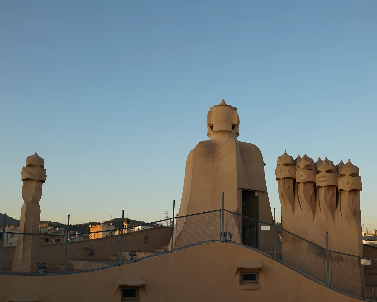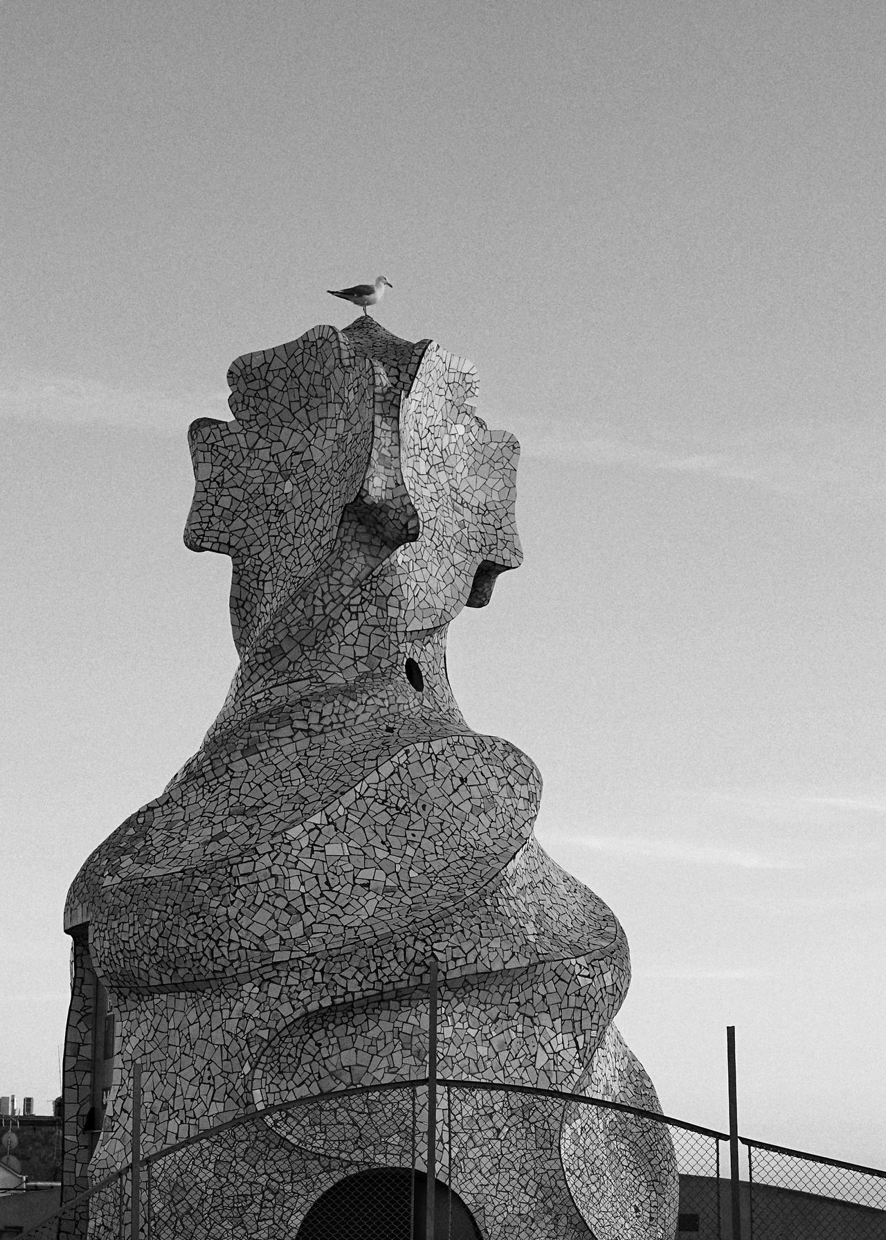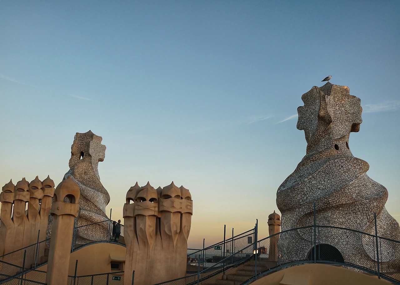나의 유년을 사로잡은 세상에서 가장 고독하고 창의적인 영혼 가우디를 만나러 간다. 해변가에서 잔뜩 묻어온 모래와 땀을 씻어내고 구글맵을 의지해 동생과 까사밀라까지 걸어가는 동안 누군가는 너무도 아름다워 끝나지 않기를 바랐다는 람브라스 거리를 지나 번화한 쇼핑거리를 지난다. 오전 해변가의 고딕지구의 좁다랗고 조금은 스산했던 골목길의 풍경이 싹 지워진 대로에는 많은 인파가 눈에 띈다. 한국인들도 꽤 많아서 심심찮게 한국어가 들려온다. 드디어 보이는 지붕 위 기사들. 독특한 구조물이 지표가 되어 우리를 내려다보고 있다. 시간 계산을 잘못한 탓에 까사 바트요와 밀라를 두고 고민을 많이 했는데, 거대한 중정으로 쏟아져 내리는 햇살의 오묘한 조화를 보고 싶었던 우린 까사밀라를 낙점했다.